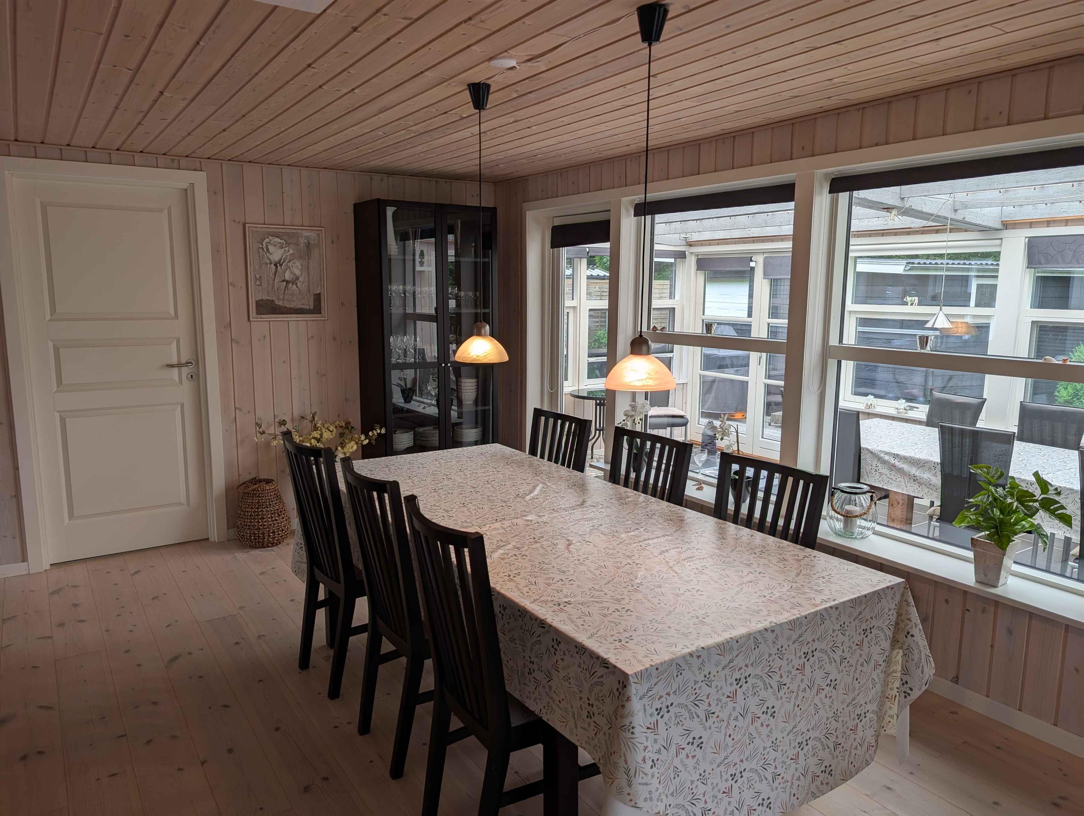 Dette flotte hus er på 116 kvm 18 kvm udestue - her er masser af plads til hele familien. Huset er bygget i 1969 og har gennemgået en omfattende renovering/tilbygning i 2007. Det har et dejligt veludstyret køkken/alrum i forbindelse med en stor og rummelig stue med en helt ny brændeovn (2025). Her er 3 værelser med gode dobbeltsenge samt et køjeværelse med 2 køjer. Alle værelser har skabe til opbevaring af tøj. I huset er et pænt og rummeligt badeværelse med bruseniche. I garagen lige overfor huset ligger et velindrettet grovkøkken med et stort køleskab samt et ekstra toilet med vaskemaskine og tørretumbler. Er det en dejlig varm sommerdag, kan du sætte dig og nyde grill maden på en af de 3 sider rundt om huset, hvor der er træterrasser med havemøbler. Er det køligere er udestuen et super godt alternativ. Haven er stor og rummelig. I et hjørne af haven er der indrettet børneområde med gynger og legehus. Der er også bålplads i græsplænen. Der er rigelig plads til spil af mange slags i haven. Græsset klippes af en robot. Hele grunden er indhegnet og fuldstændig privat med masser af dejlige læ-kroge. Har I cykler med eller er friske på en god gåtur, kan I cykle eller gå langs Frederik den 7. Kanal ind til havneområdet i Løgstør med dejlige restauranter og gode muligheder for is og indkøb, denne tur er 4 km. Trænger I til en tur i badeland ligger Landal Rønbjerg 6 km fra huset. Spiller I golf ligger Himmerland 16 km fra huset og til Løgstør Golfklub er der 4 km. Obs, udlejes ikke til erhversmæssigt brug.