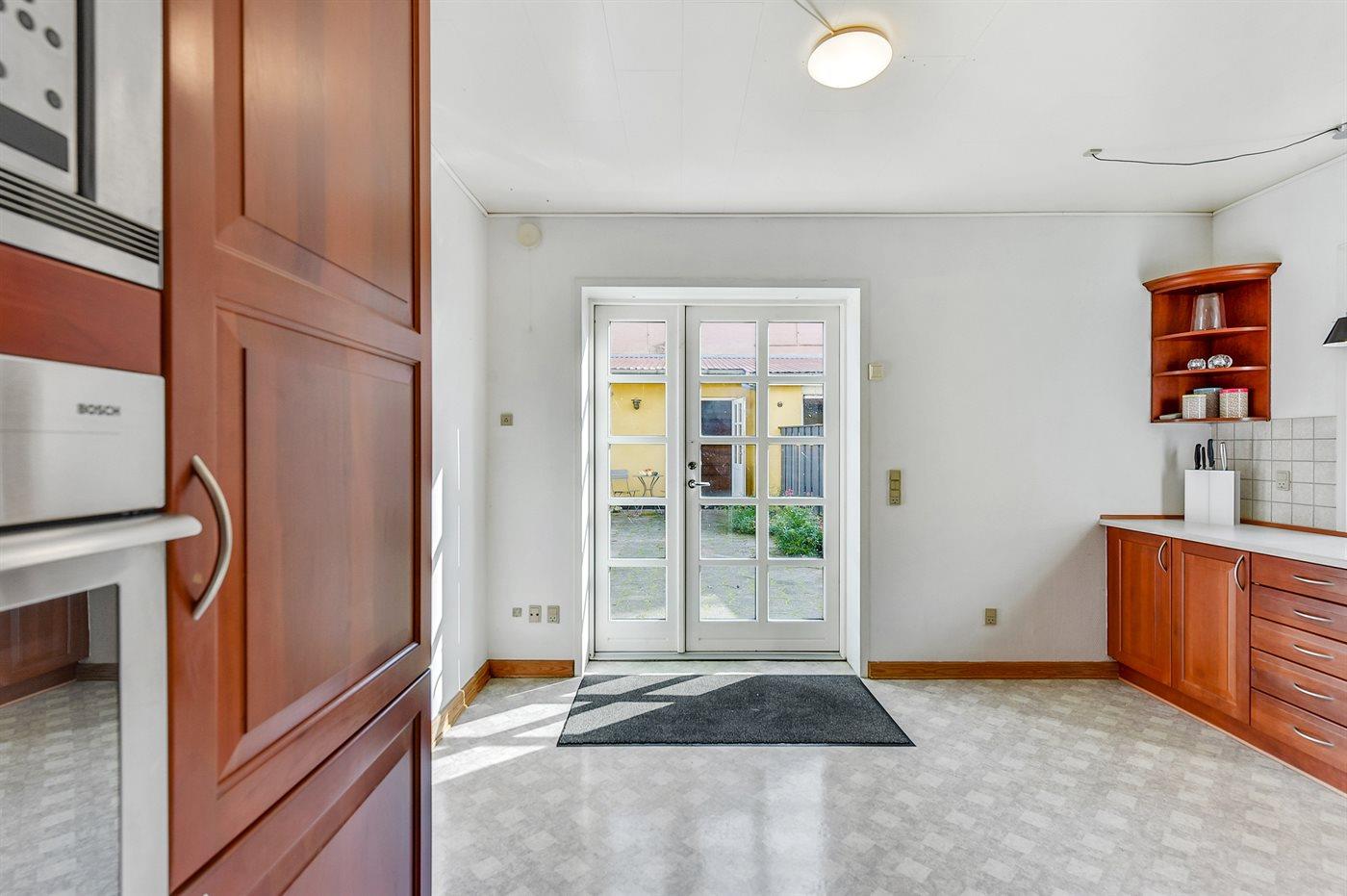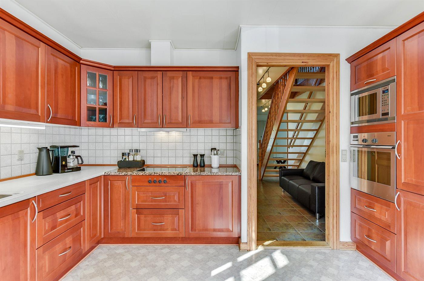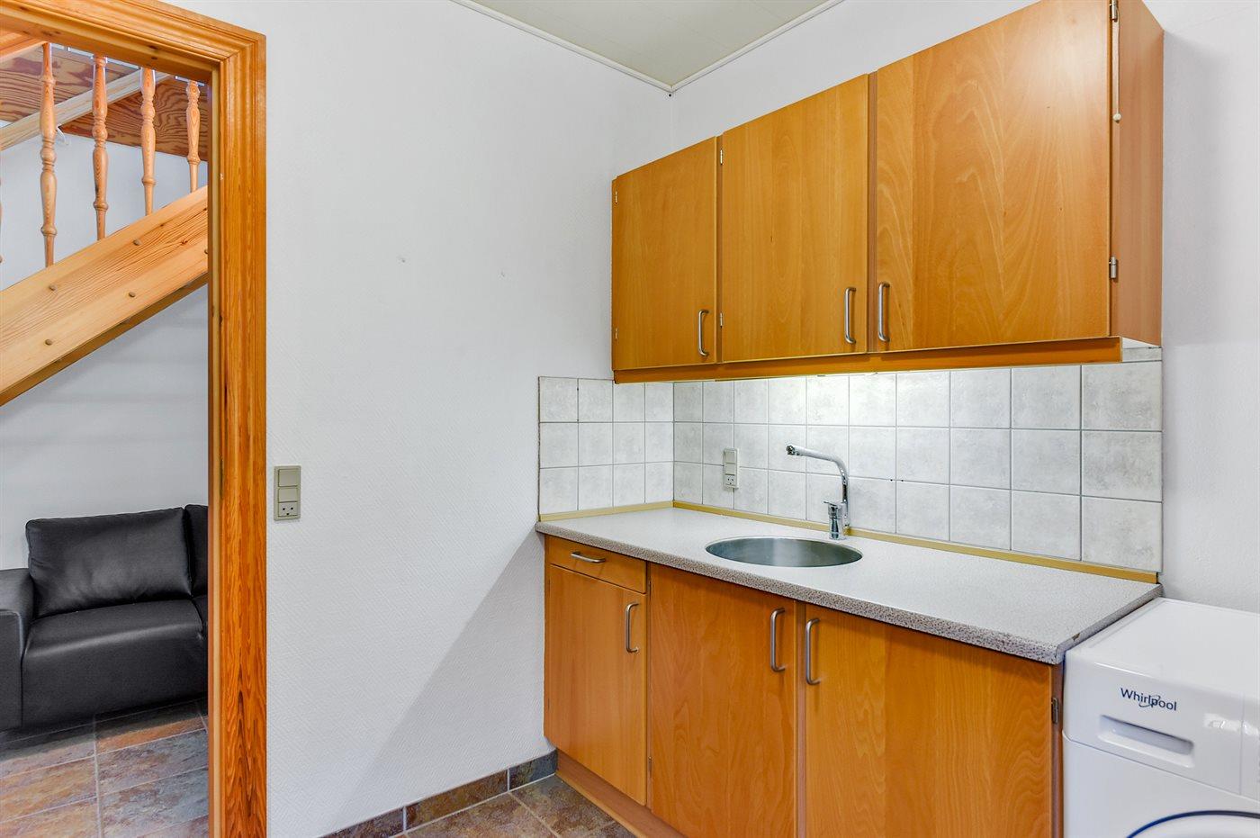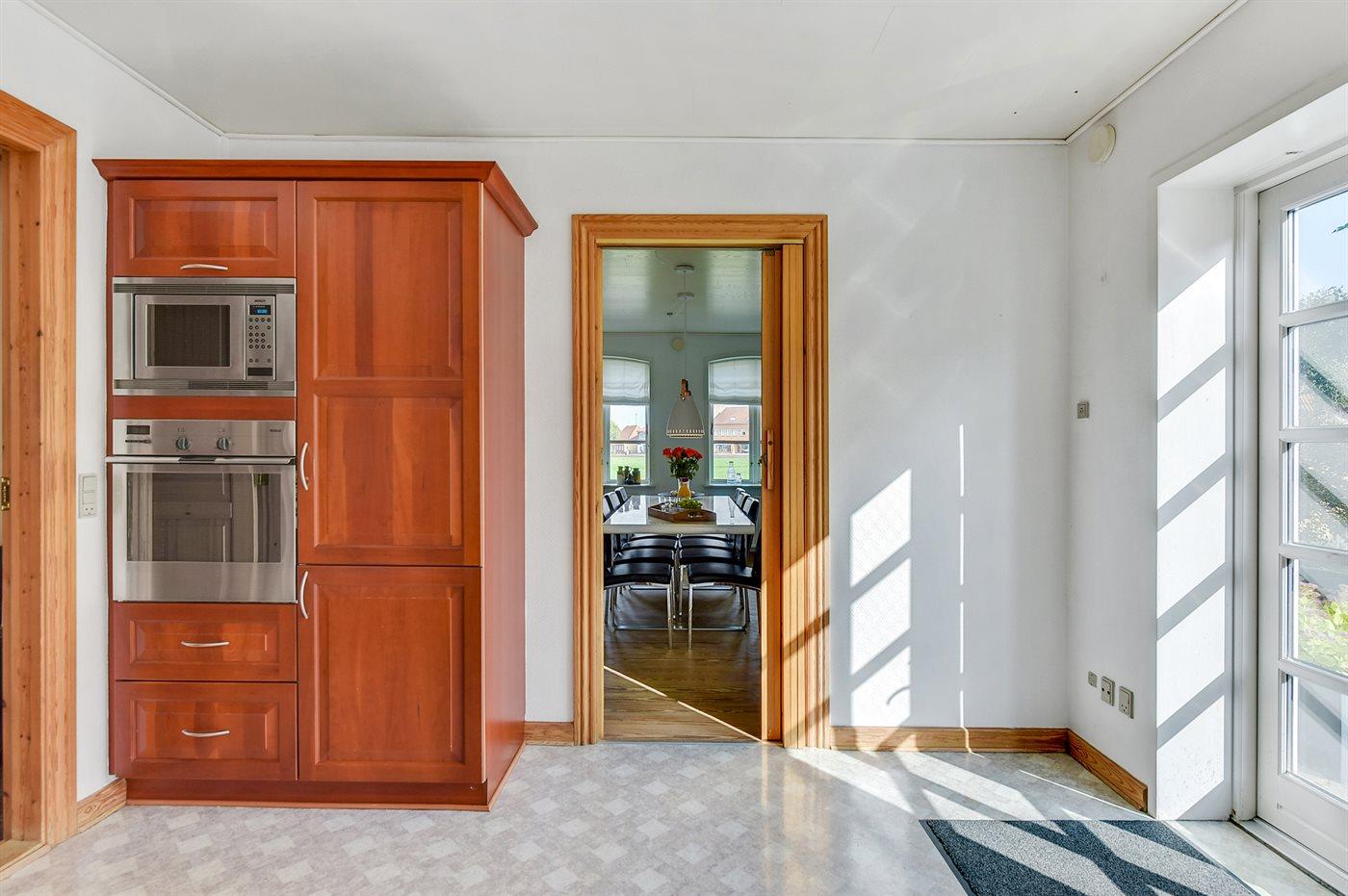 Køkkenet er udstyret med 1 køleskab. Der er 4 elkogeplader, bageovn, mikrobølgeovn samt opvaskemaskine.