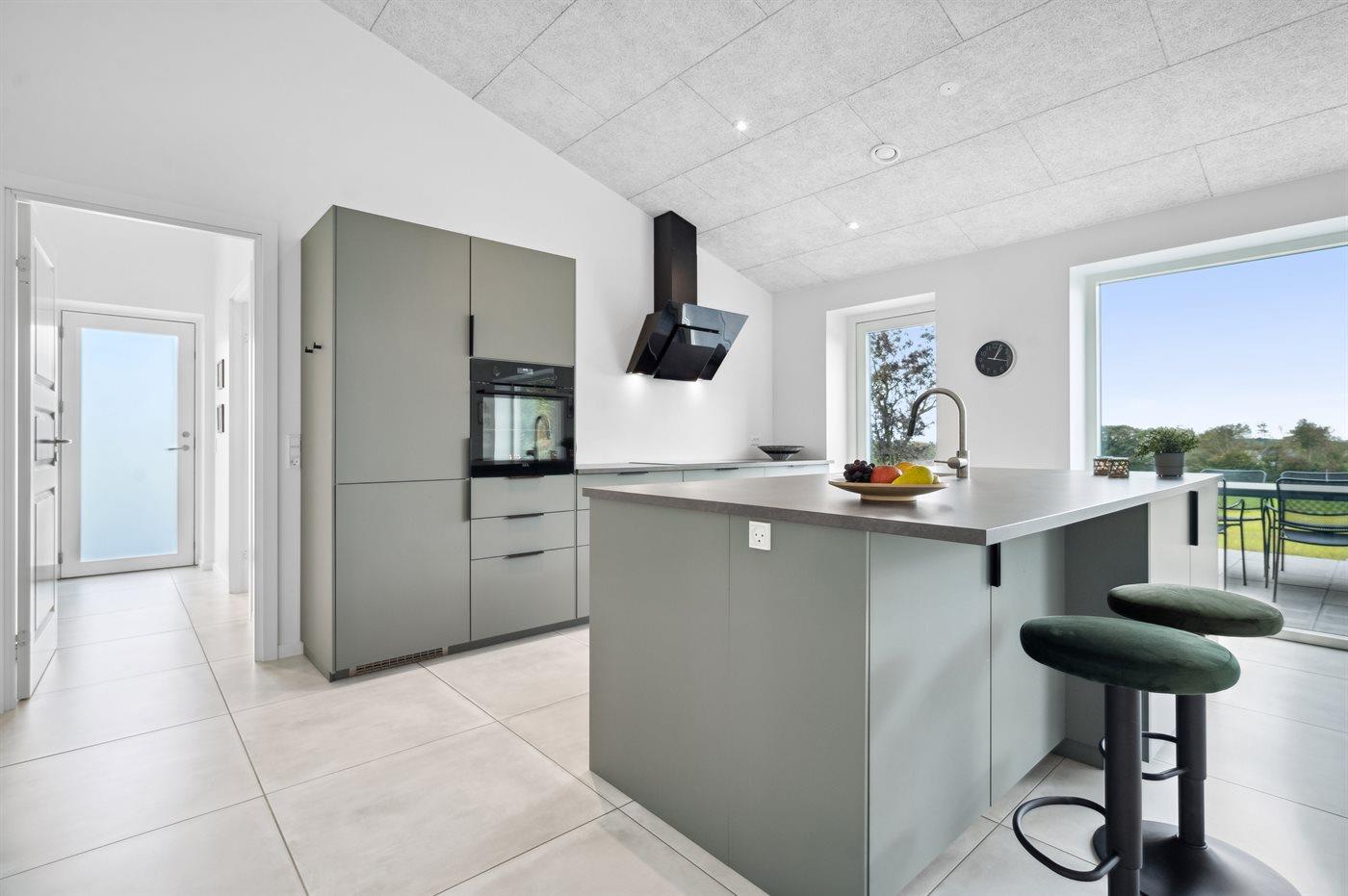 Køkkenet er udstyret med 1 køleskab. Der er 4 induktionskogeplader, varmluftovn samt opvaskemaskine.