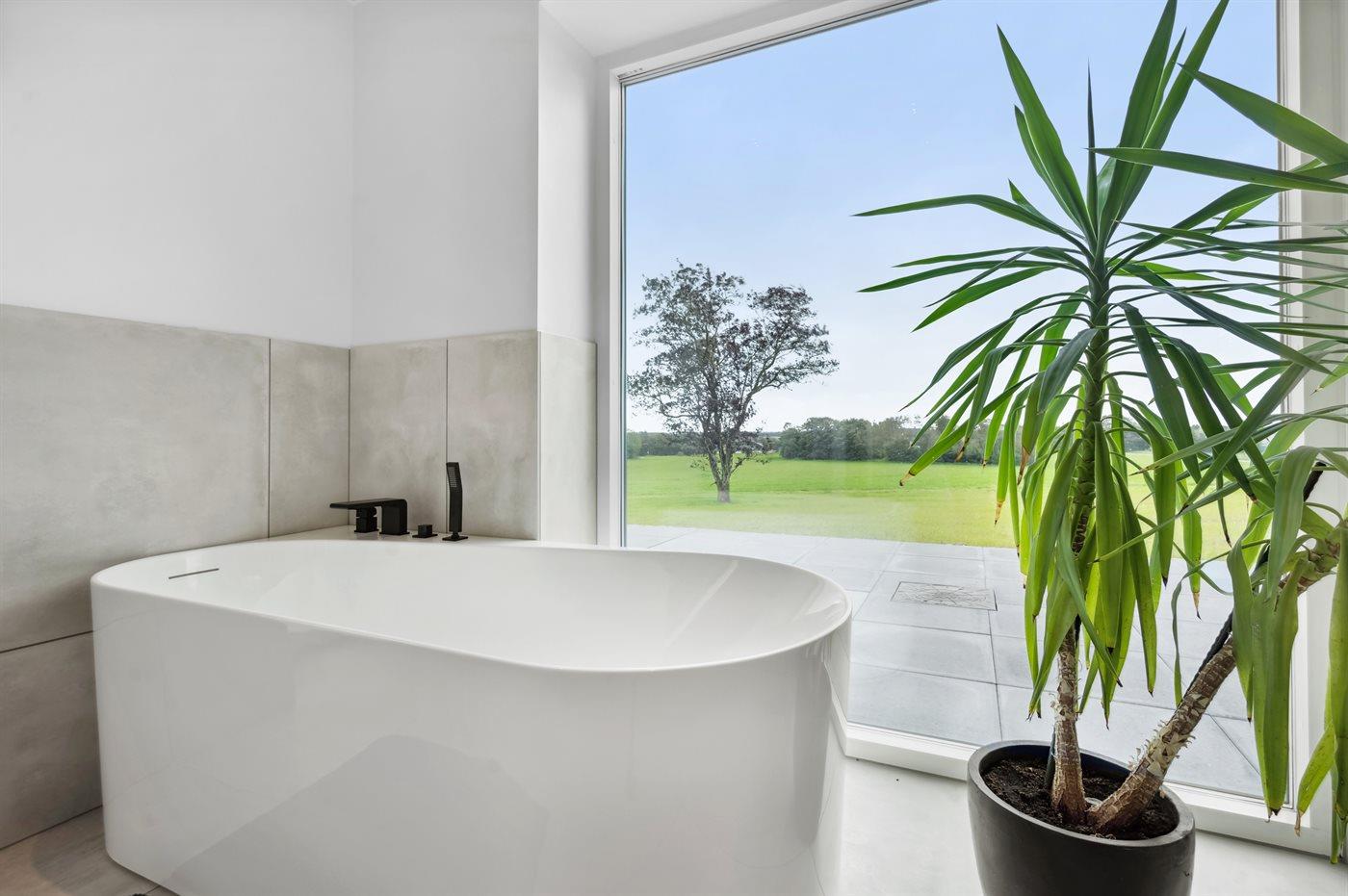Flot landejendom med udsigt over mark og eng, udstyret med spa og moderne faciliteter.