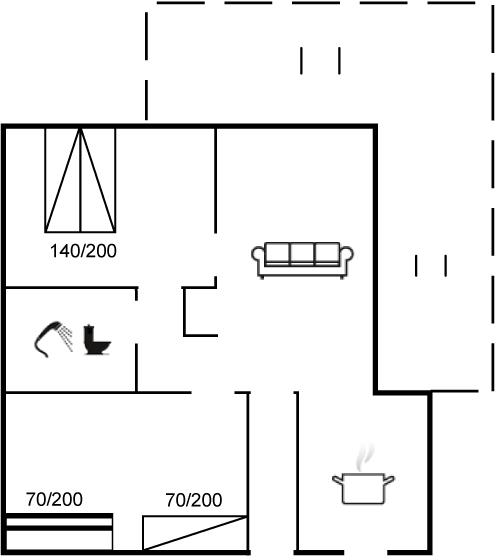 Der er i alt 2 soveværelser. Sovepladserne fordeler sig på: 2 sovepladser i dobbeltseng. 1 soveplads i enkeltseng. 2 sovepladser i køjeseng. Derudover er der 1 stk. barneseng.