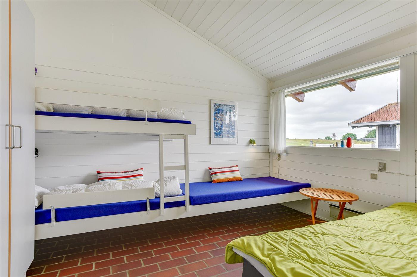 Der er i alt 2 soveværelser. Sovepladserne fordeler sig på: 2 sovepladser i dobbeltseng. 1 soveplads i enkeltseng. 3 sovepladser i køjesenge.