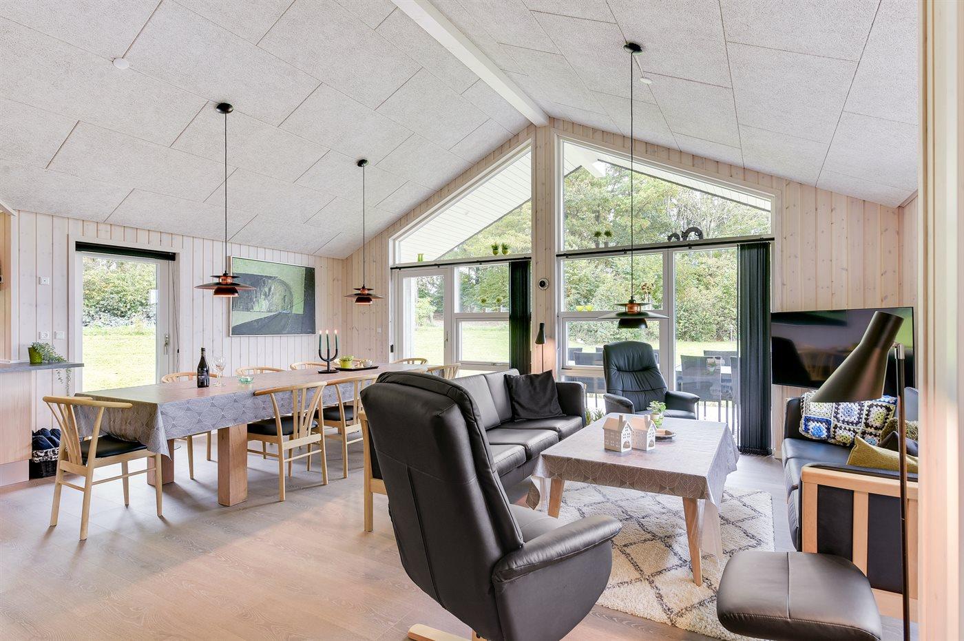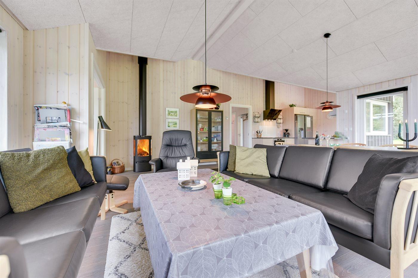 Sommerhuset egner sig til 9 personer. 2 af sovepladserne er kun egnet til større børn (4-11 år). Ferieboligen er på 126 m² og er bygget i 2021. Det er ikke tilladt at medbringe husdyr. Ferieboligen er udstyret med energibesparende luft til vand varmepumpe. Der er gulvvarme i stuen. Der er gulvvarme i entréen. Der er gulvvarme i gangen. Der er gulvvarme i alrummet. Ferieboligen har vaskemaskine. Tørretumbler. Frysekapacitet på 190 liter. Der er desuden brændeovn. Til de små er der 1 stk. barnestol.
