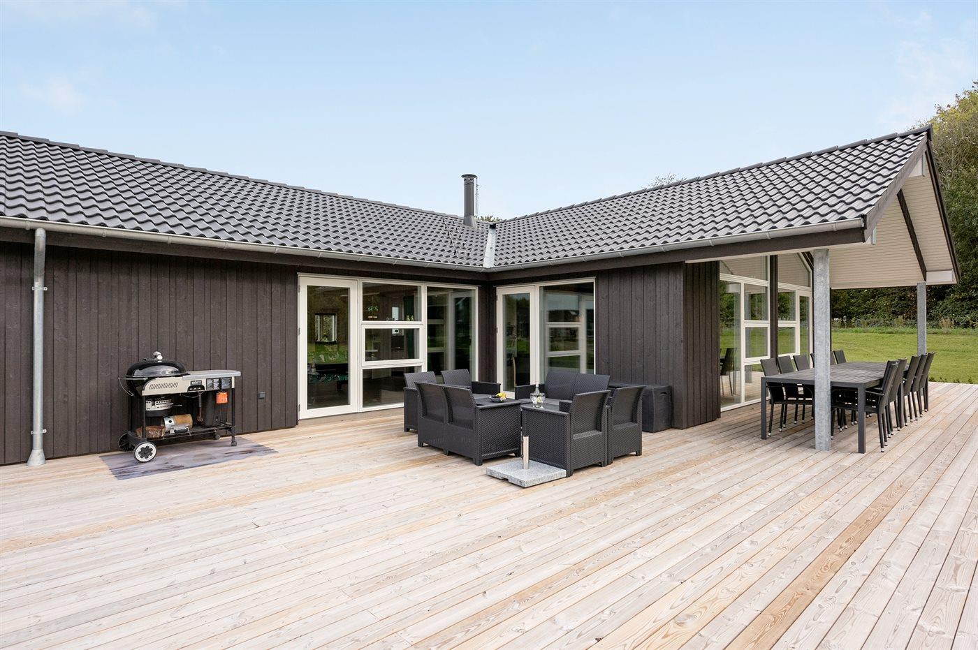 Moderne sommerhus i Løjt med havudsigt, spa og aktivitetsrum nær golf og strand.