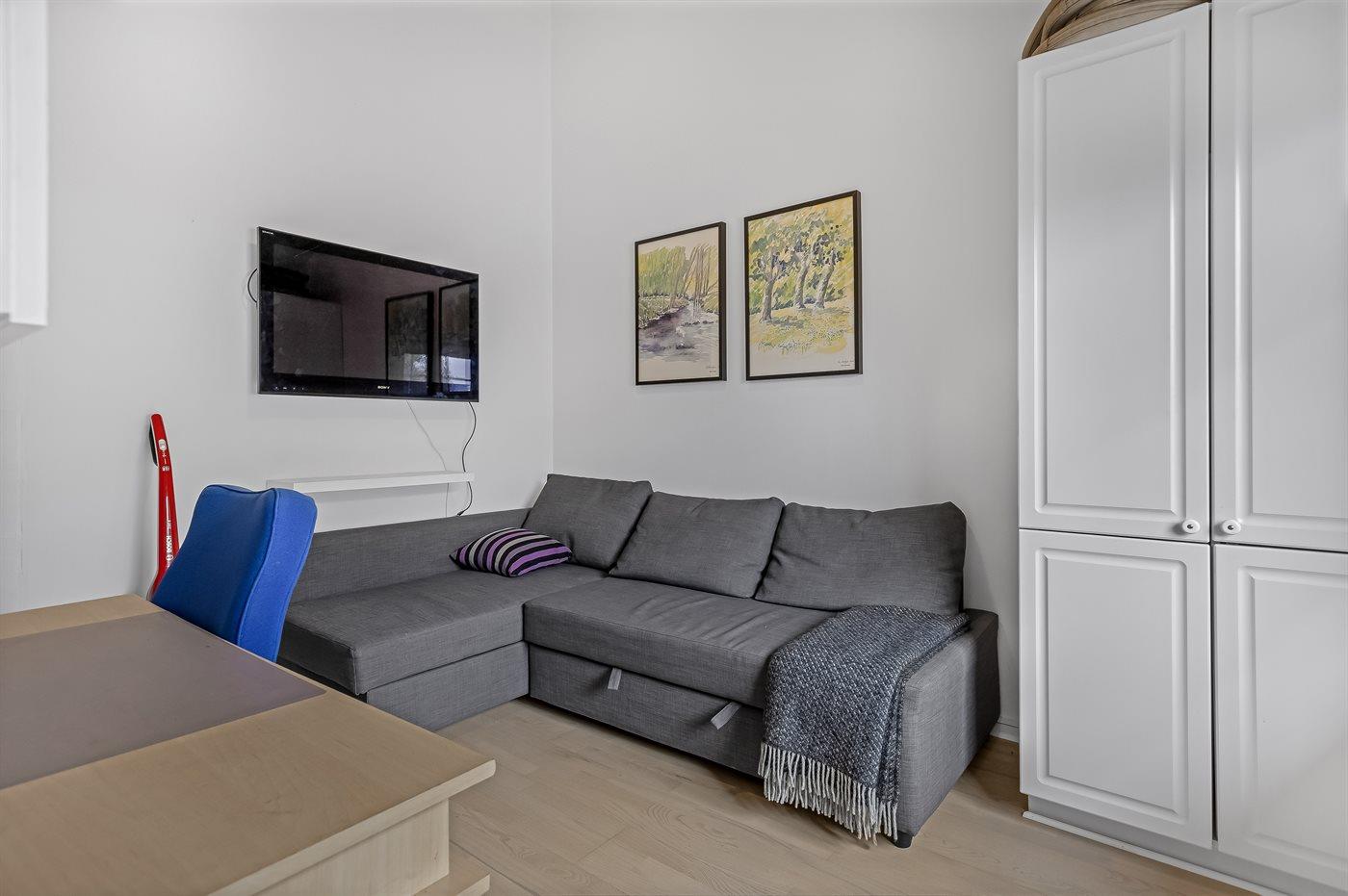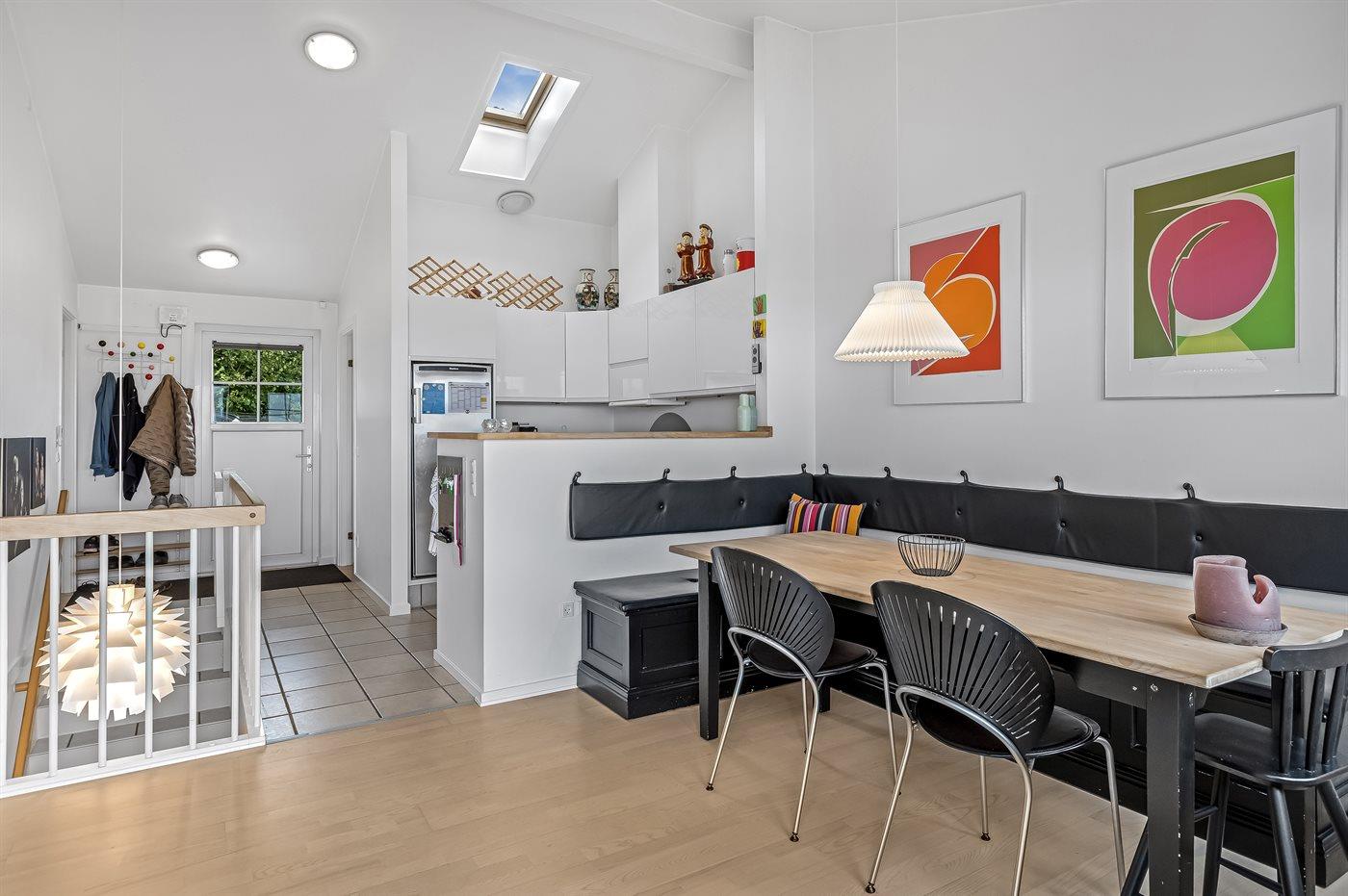 Køkkenet er udstyret med 1 køleskab. Der er 4 induktionskogeplader, varmluftovn, mikrobølgeovn samt opvaskemaskine Der er gulvvarme i køkkenet.