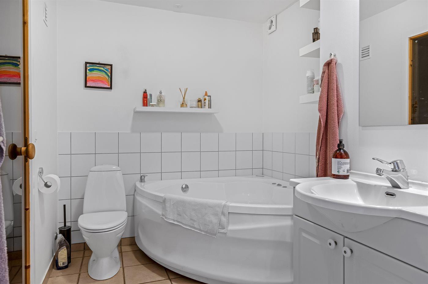 Der er 2 badeværelser med bruseniche og 2 toiletter. Der er gulvvarme på 2 badeværelser. I saunaen er der mulighed for afslapning.