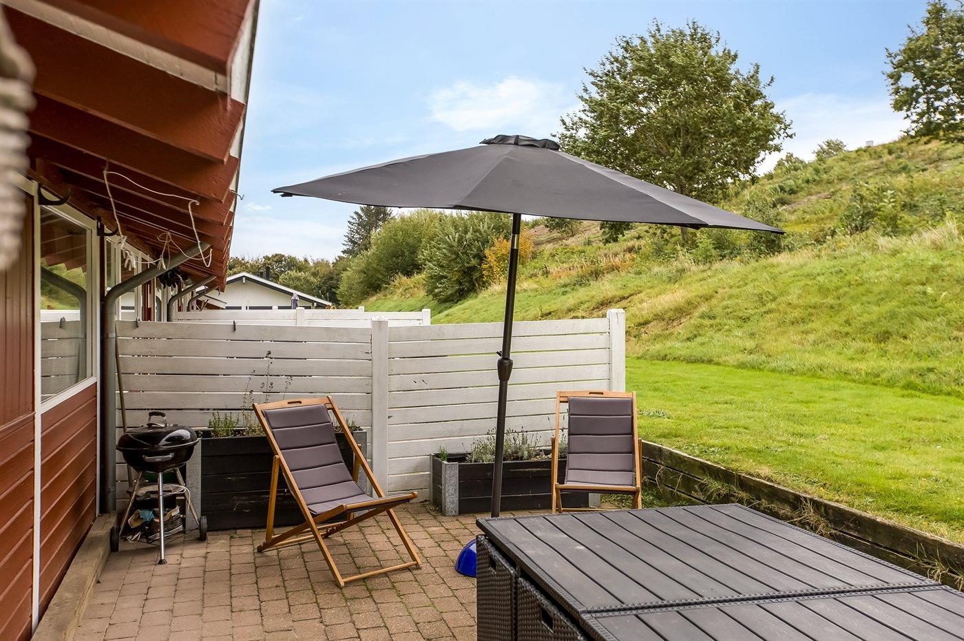 Ferieboligen er beliggende på en 110 m² stor havegrund. Der er 200 m til havet. Der er en badebro i nærheden. Nærmeste forretning er beliggende i en afstand af 3000 m. Der er en golfbane i en afstand af 500 m. Til ferieboligen hører åbent terrasseareal. Udgang til altan. Der ligger en legeplads i en afstand af 50 m. Grill til rådighed.