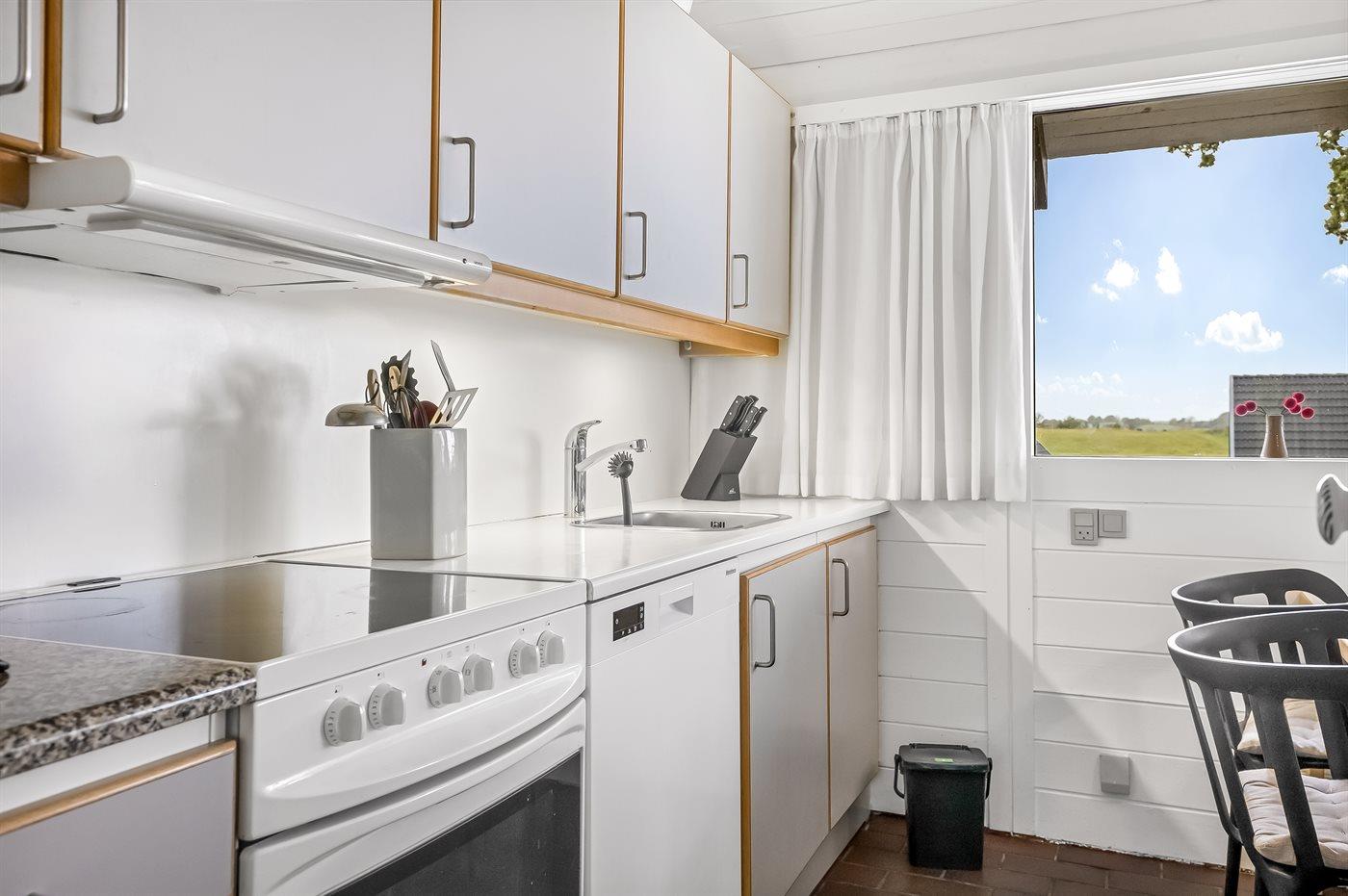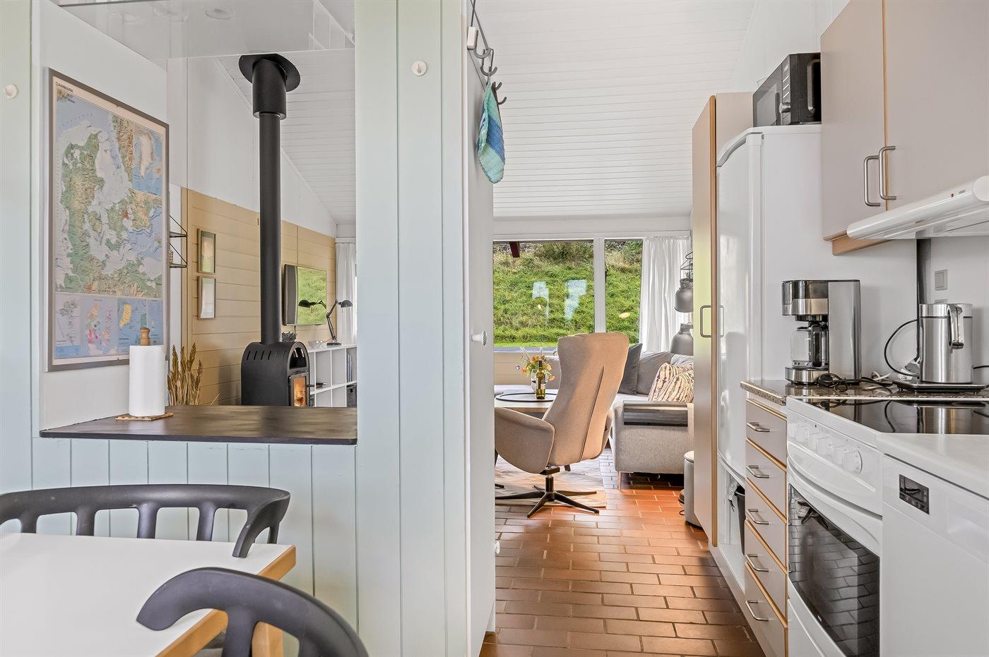 Køkkenet er udstyret med 1 køleskab. Der er 4 keramiske kogeplader, varmluftovn, mikrobølgeovn samt opvaskemaskine.