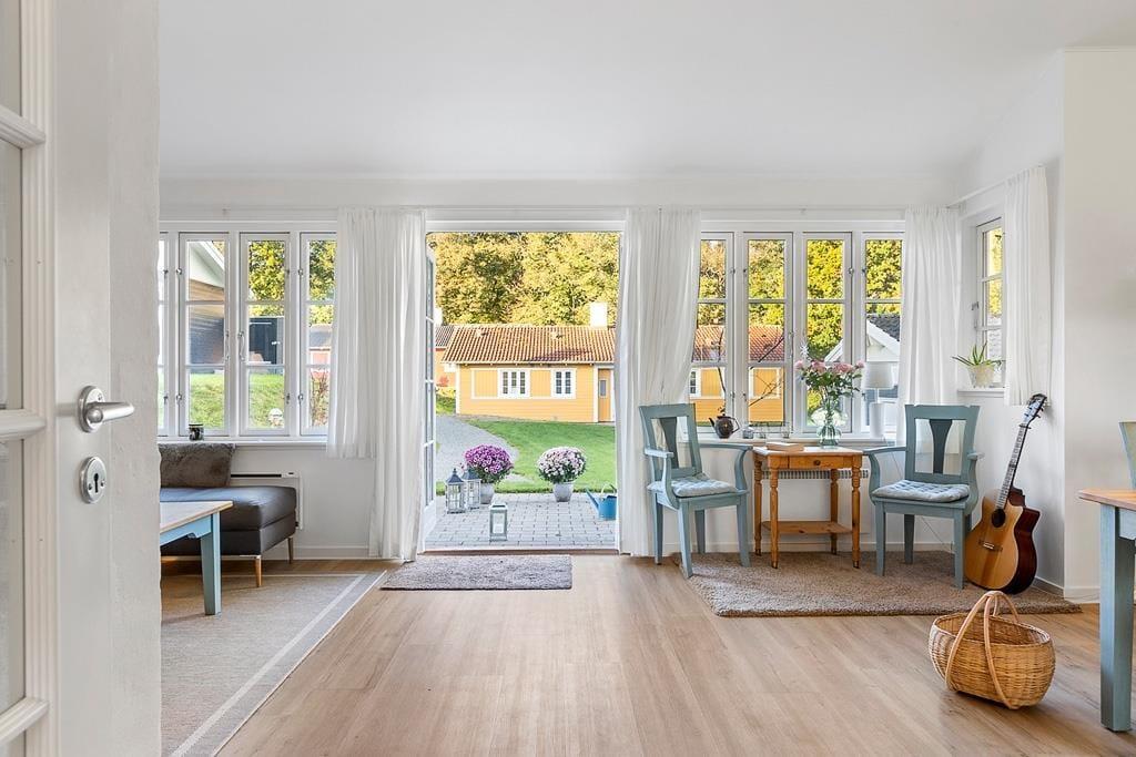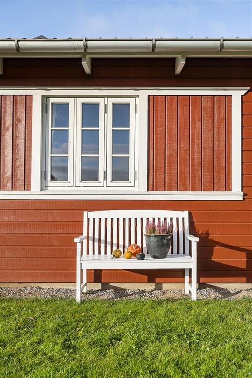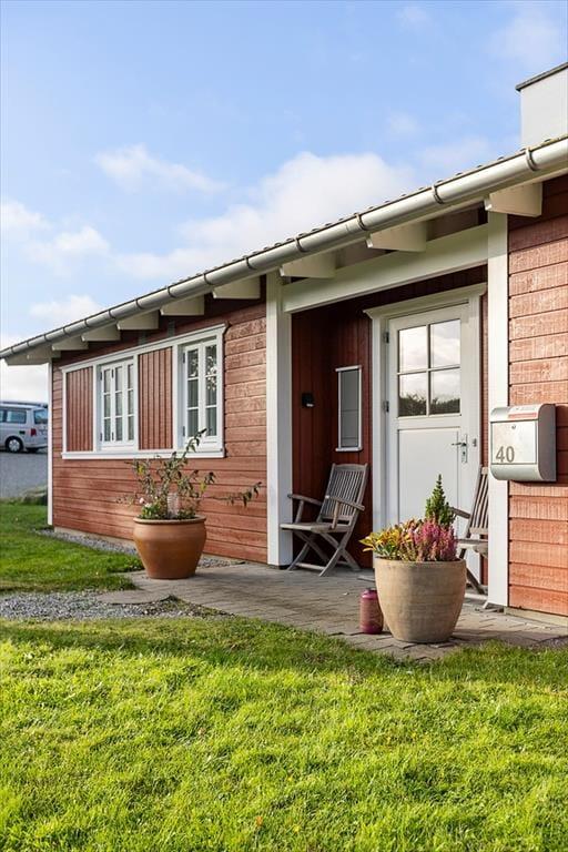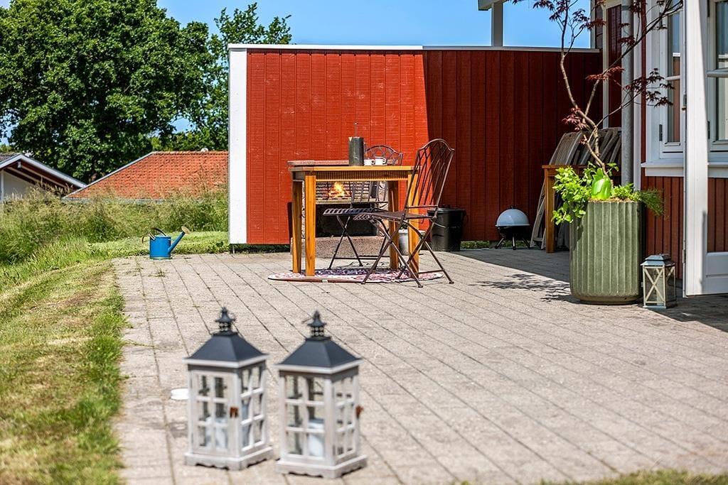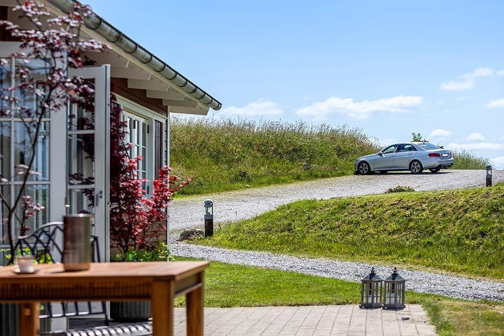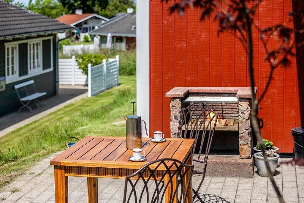 Husets hjerte udenfor er den dejlige flisebelagte terrasse, der ligger perfekt placeret til at fange solens stråler fra morgen til aften. Her er der rig mulighed for at nyde dagens måltider under åben himmel, tænde grillen og lade dagens indtryk synke ind. Den omkringliggende have er grøn og frodig – et fredfyldt sted, hvor fuglesang og den blide brise fra fjorden danner en perfekt baggrund for en afslappende stund. Lad børnene lege på plænen, eller sæt dig med en god bog i solen, mens roen breder sig.