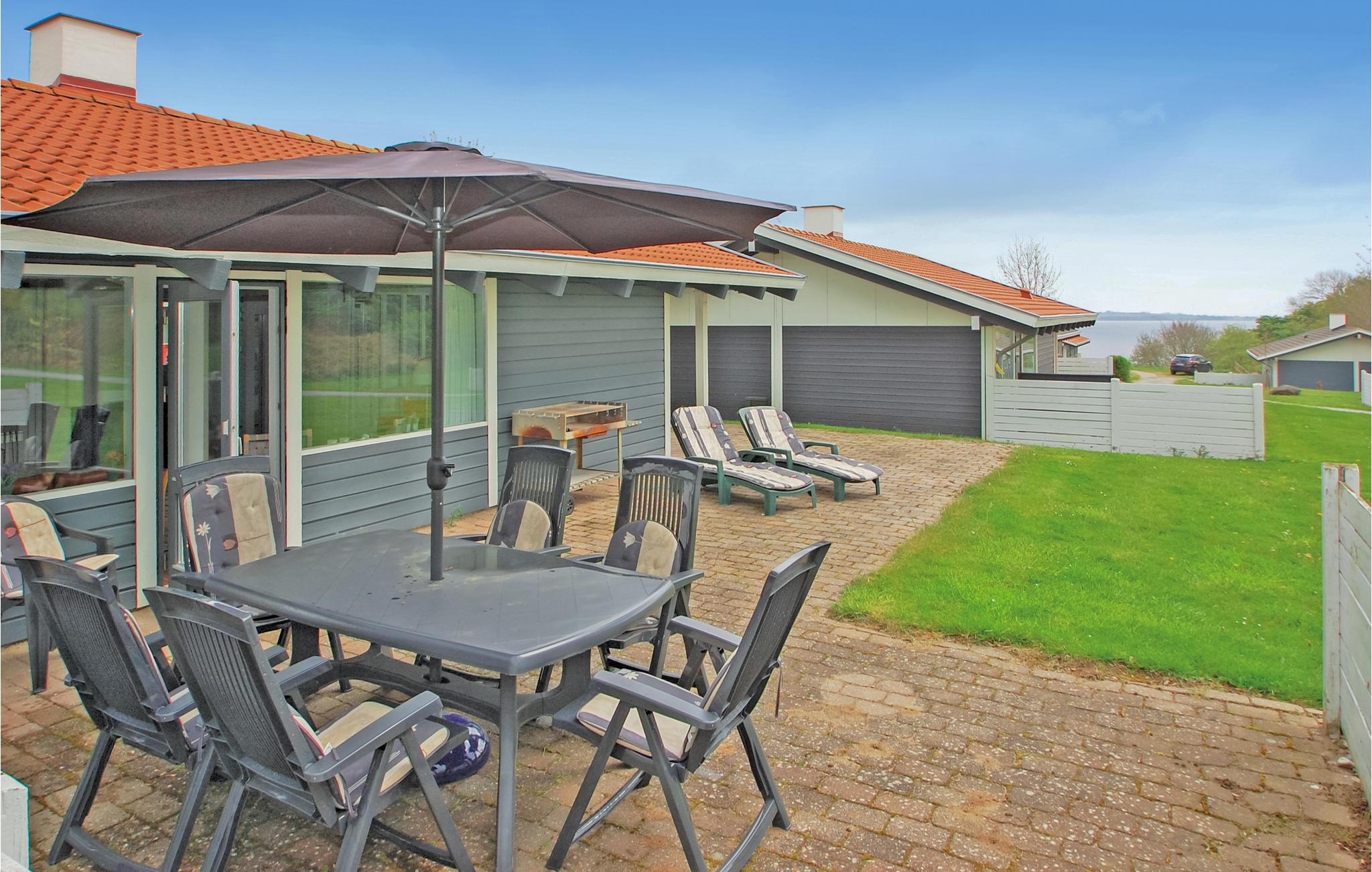 Fra dette feriehus ved Løjt feriecenter har I en utrolig flot udsigt ud over vandet, og på den dejlige terrasse kan I sidde og nyde ferien i fulde drag.