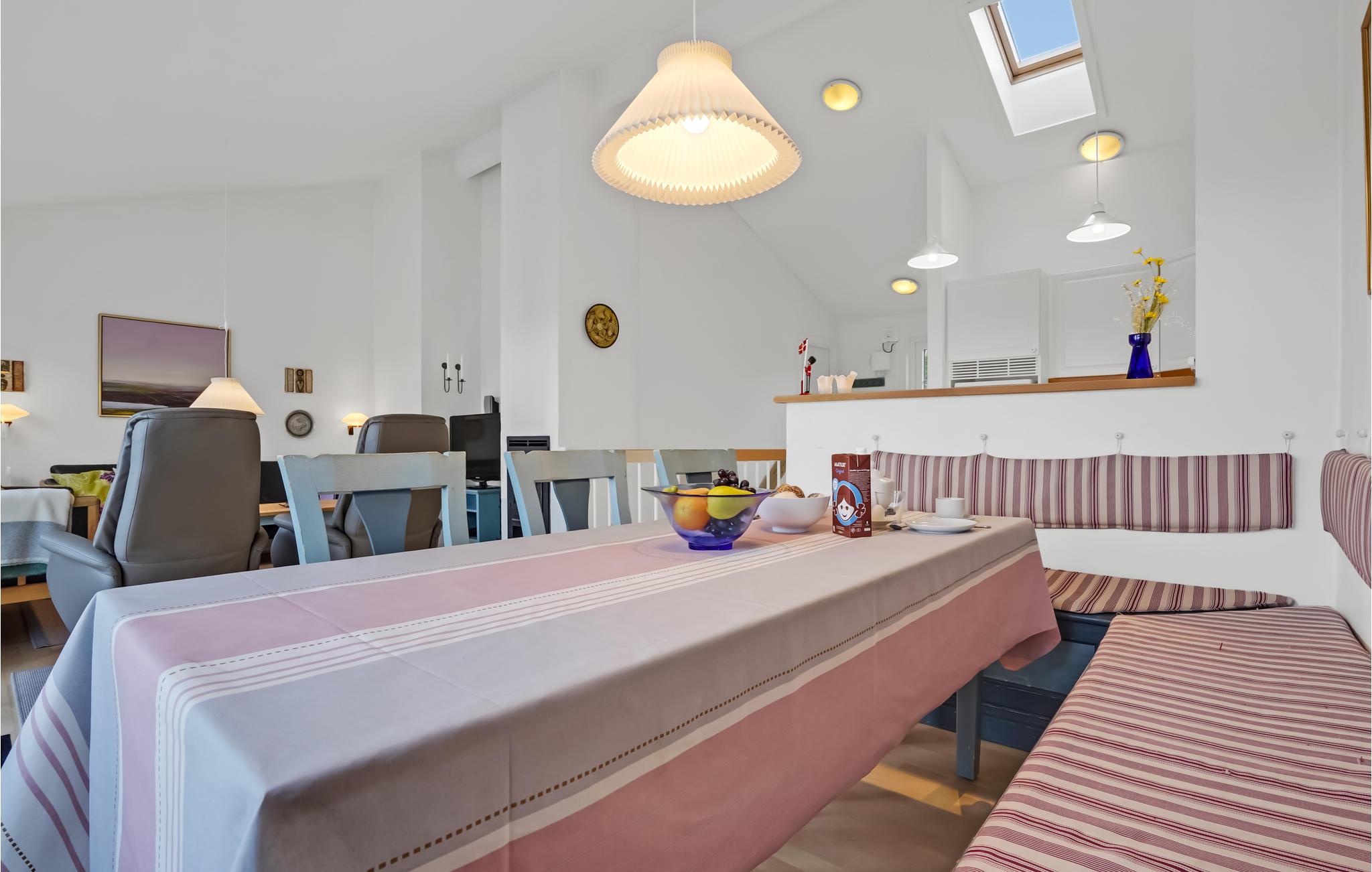 Huset byder velkommen i en god beliggenhed i gåafstand til havet. Lad tankerne vandre i de lyse lokaler, som med deres hyggelige indretning og venlige farver danner den ideelle ramme for jeres afslapning. Den attraktive opholdsstue er indrettet, så I kan tilbringe hyggelige timer sammen, for eksempel mens I spiser sammen eller sidder om aftenen i den behagelige sofa med flammerne knitrende i brændeovnen. Efter en aktiv dag kan I slappe af i saunaen. Nyd solen på terrassen, mens jeres børn leger og saml senere hele familien til en lækker grillmiddag.