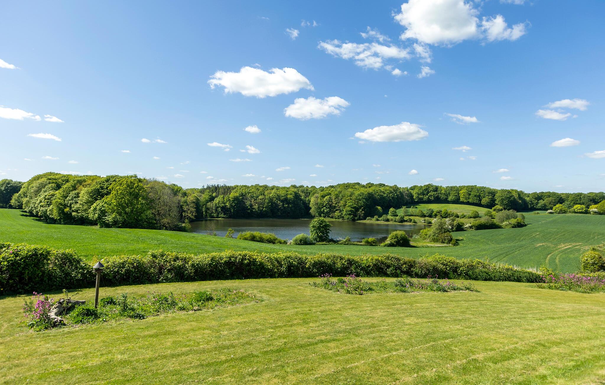 Indbydende sommerhus ved Løjt Strand med panoramaudsigt til sø, skov og natur, perfekt til afslapning i Sønderjylland.
