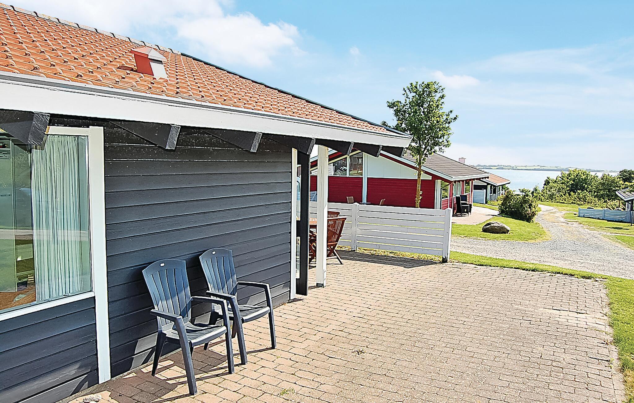 Feriehus med havudsigt ved Løjt Strand og adgang til fælles pool og aktivitetsmuligheder.
