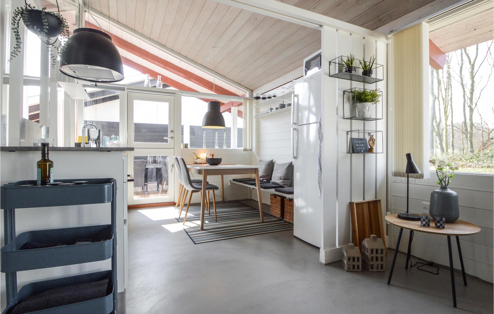 Et flot renoveret feriehus beliggende tæt på feriecentrets faciliteter og den dejlige legeplads. Stuen og køkkenet ligger i åben forbindelse, der er et skønt lysindfald i huset, og brændeovnen skaber ekstra hygge. Her findes desuden 2 rigtig gode soveværelser med god skabsplads. Hyg jer på de 2 terrasser, hvoraf den ene ligger ugenert bag huset, eller gå på oplevelse i feriecentrets mange tilbud.