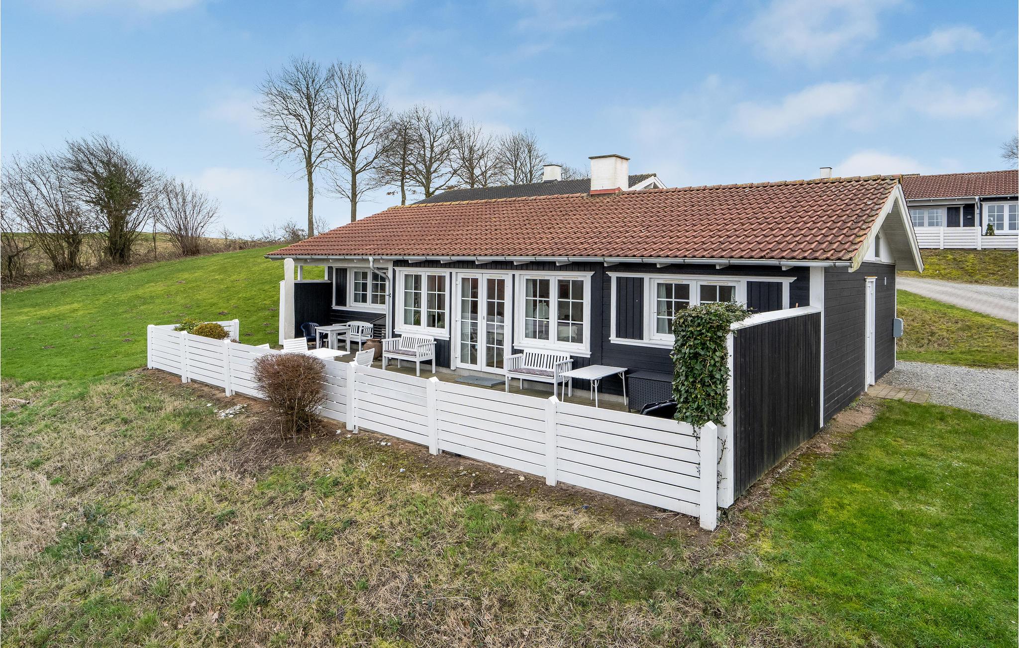 Charmerende feriehus i Løjt Feriecenter med panoramaudsigt over Lillebælt og tæt på børnevenlig strand.