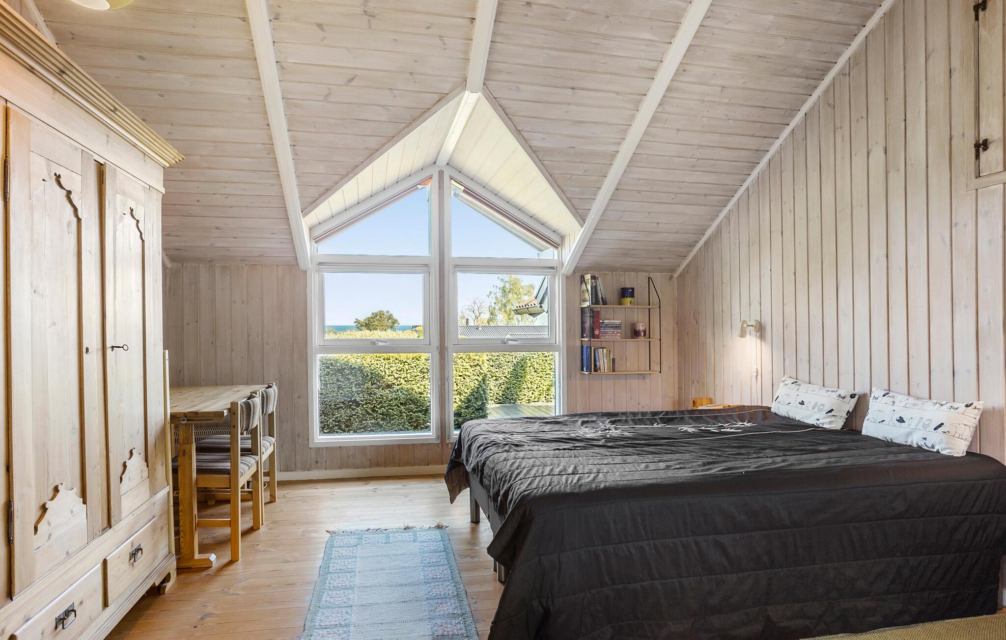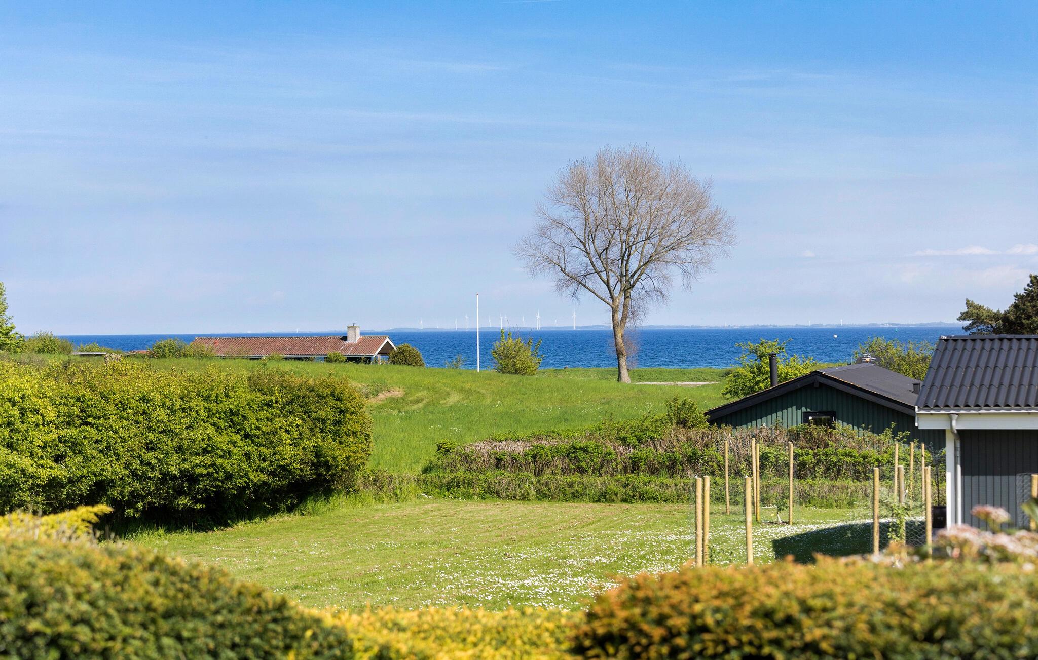 Charmerende træferiehus i Løkkeby med panoramaudsigt over Langelandsbæltet og nær børnevenlige strande.