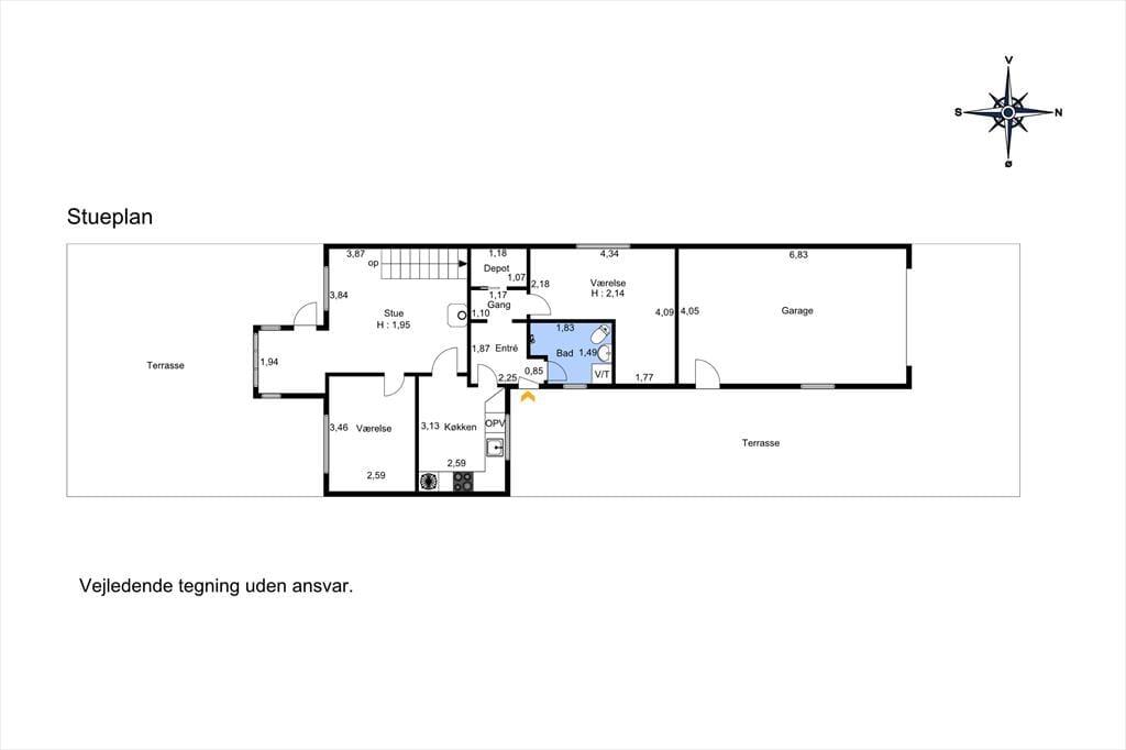 Boligen er på 108 m² og ligger på en 222 m² stor grund.