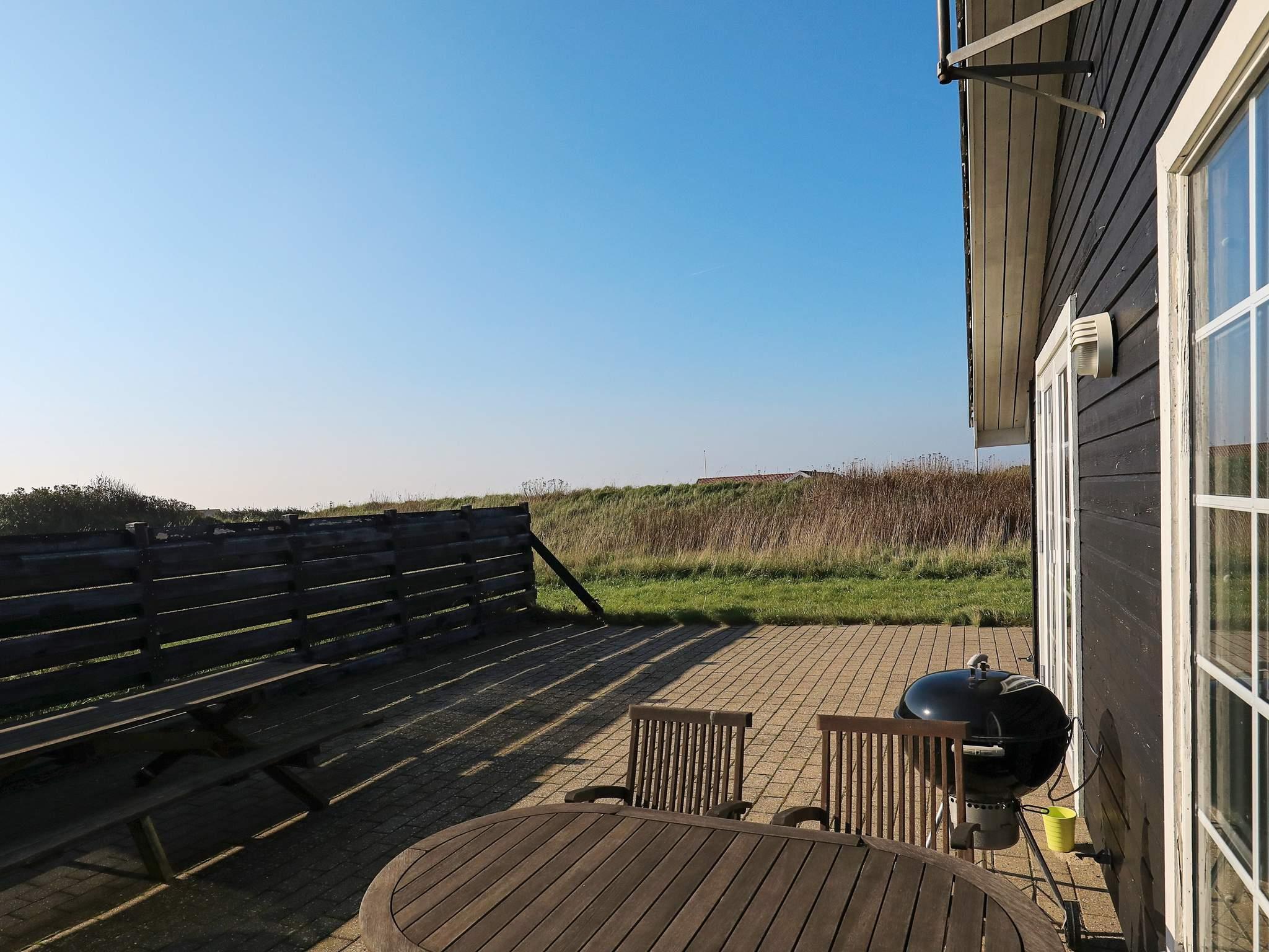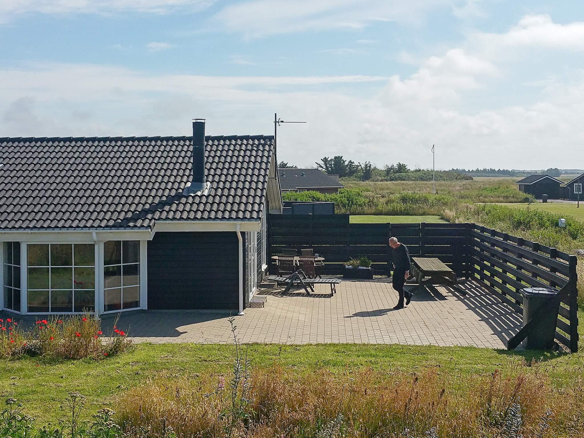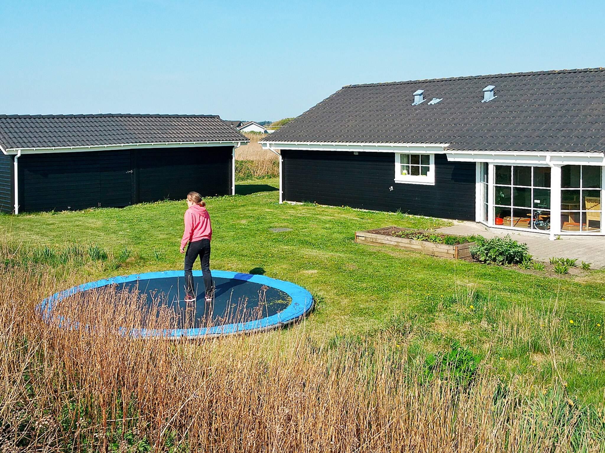 Moderne sommerhus beliggende på en stor, åben naturgrund i et naturskønt sommerhusområde lidt nord for Løkken. Sommerhuset er opført i 2002, løbende vedligeholdt, lyst og rummeligt og særdeles velindrettet med hele fire soverum, badeværelse med spabad og adgang til sauna samt gæstetoilet. Møblement og udsmykning er i dansk design. Fra opholdsafdelingen er der direkte adgang til terrassearealet, som nærmest har karakter af en solgård og er helt ugenert og med godt med læ. Til børnene er der en nedgravet trampolin (benyttes på eget ansvar/forsikring). I området er der fælles boldbane med fodboldmål. Udlejes ikke til ungdomsgrupper. Der er to elevationssenge i huset. Der er en jacuzzi Terrasse og trampolin.