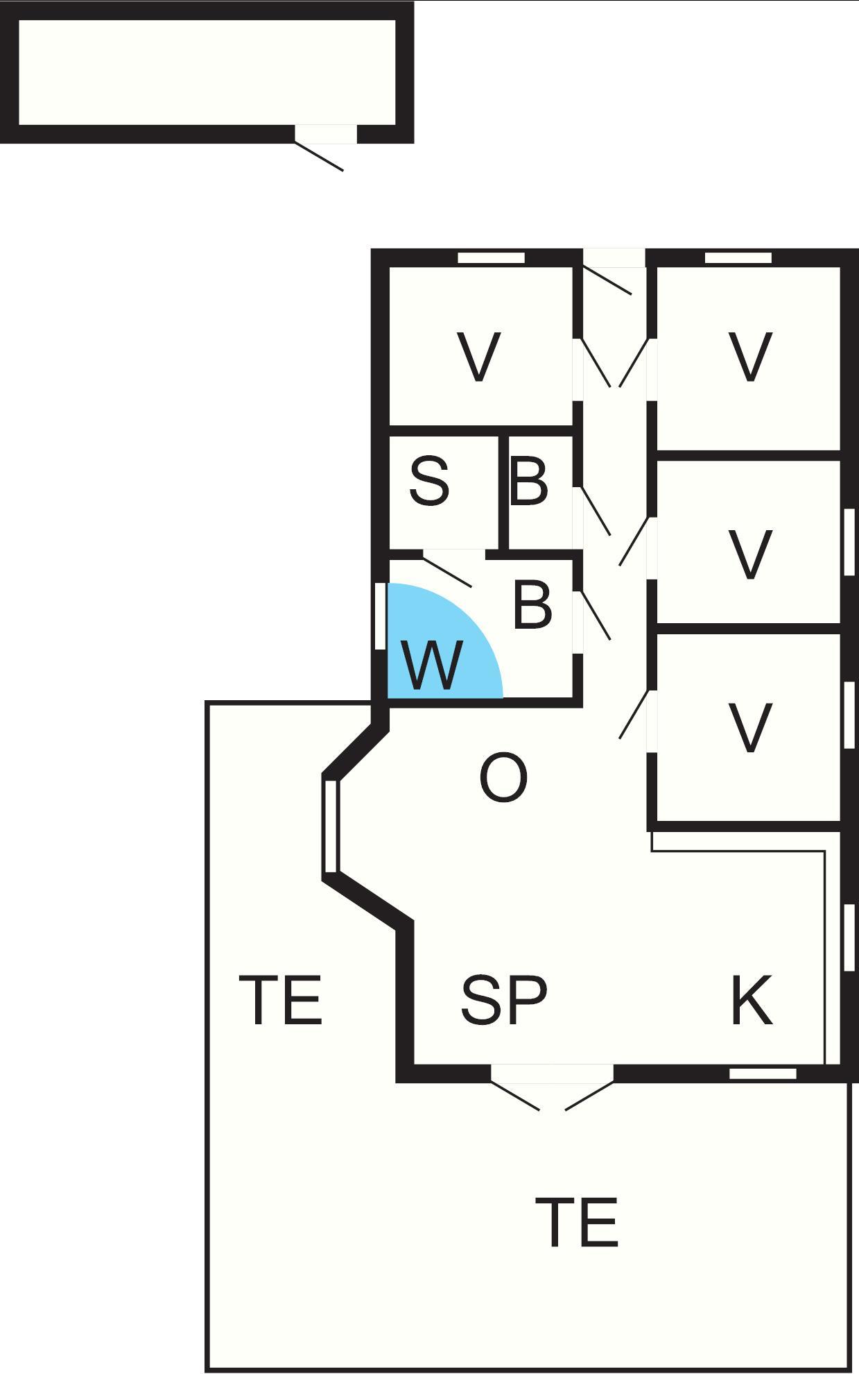 4 Soveværelser: (1DS)+(1DS)+(1DS)+(1O)