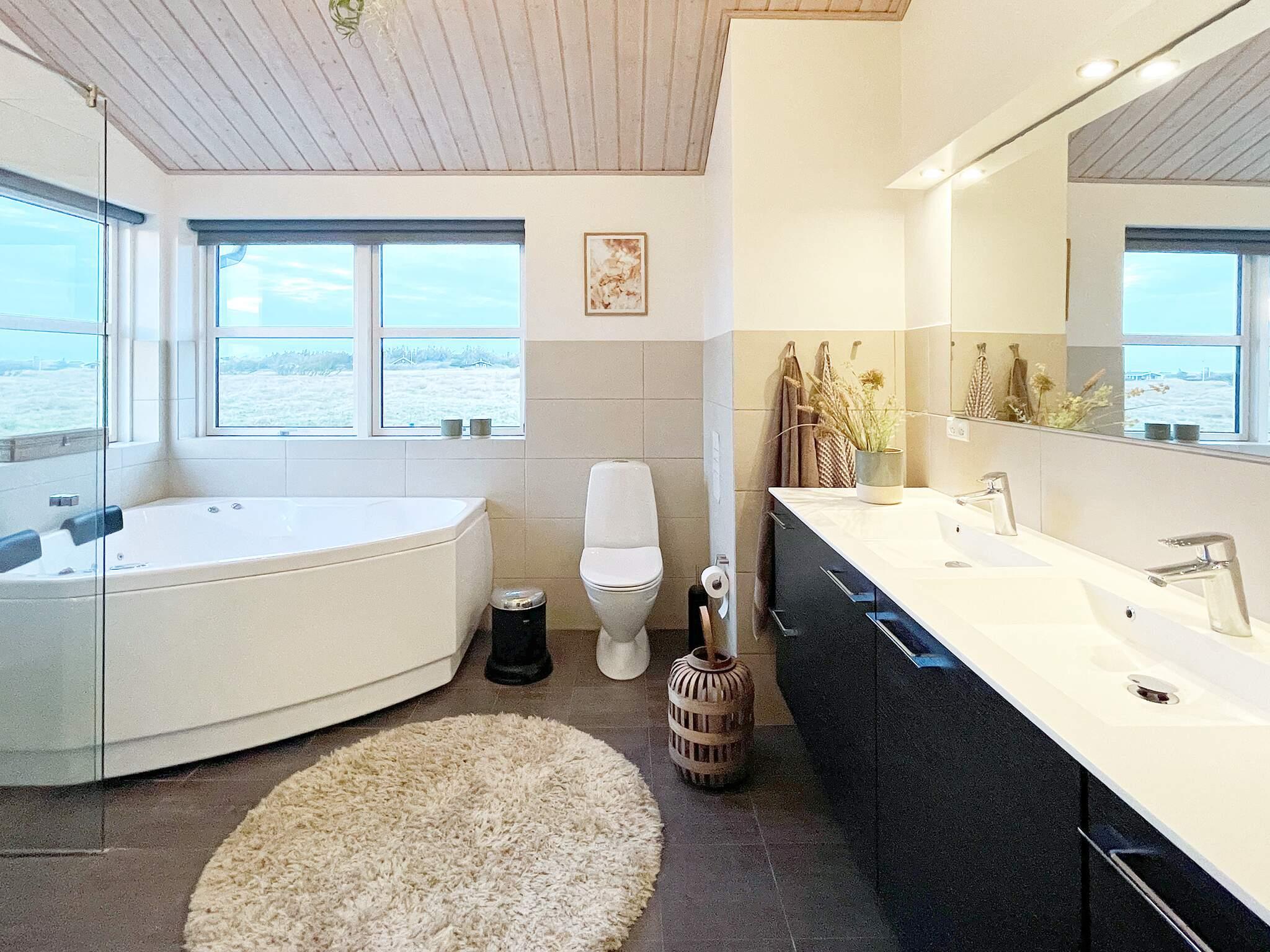 Huset er indrettet med stue/køkken i åben forbindelse, aktivitetsrum, fire soveværelser med dobbeltsenge - to værelser og bad i hver sin afdeling. Badeværelse med spabad, brus og adgang til sauna – gæstetoilet med brus. Stuen er opdelt i en opholdsafdeling med lænestole, sofagruppe og tv med danske og mindst 20 tyske kanaler og en køkken/spiseafdeling – begge med masser af plads. I aktivitetsrummet er der tv, poolbord og bordfodbold.