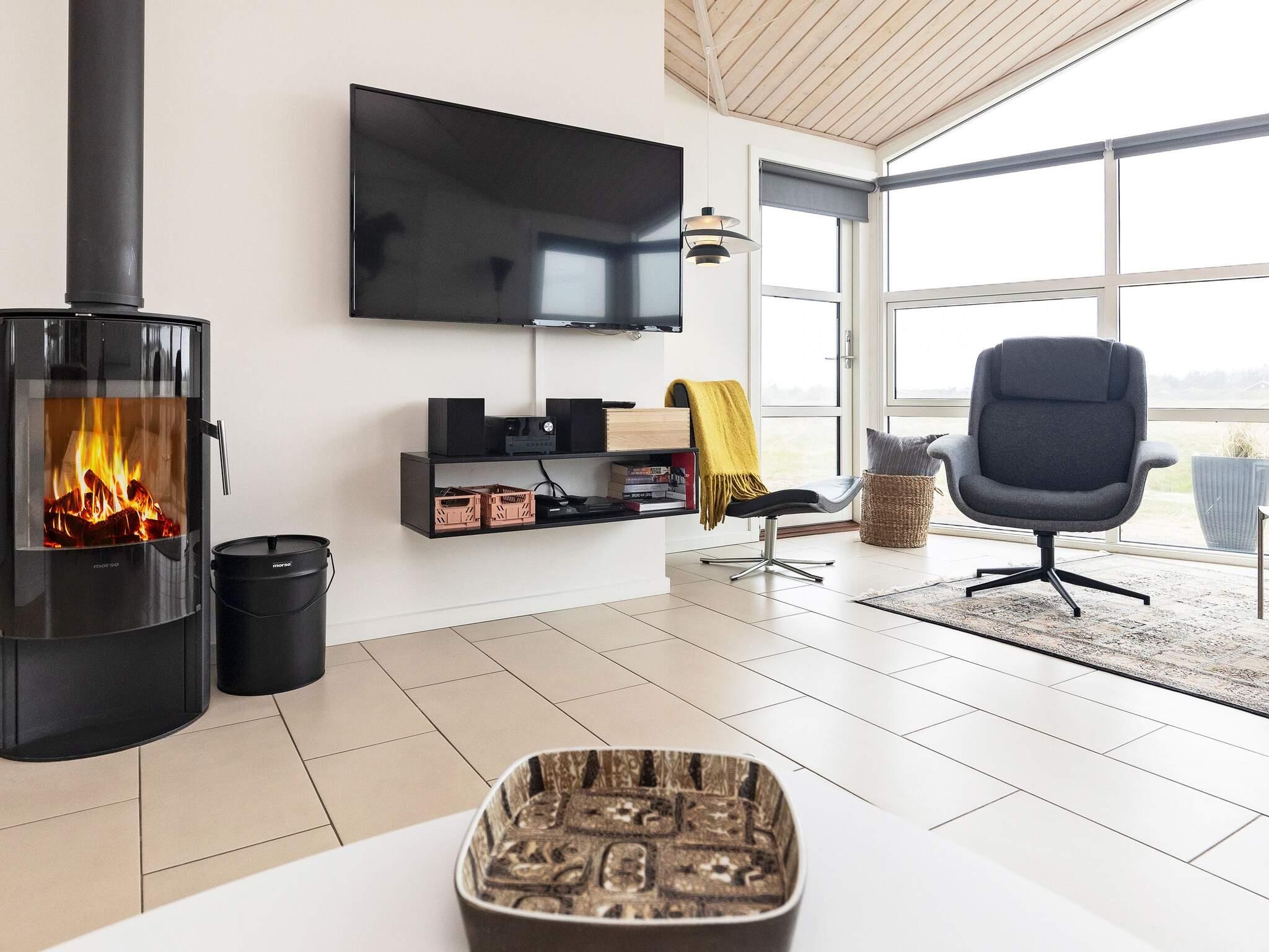 1 Opholdsstue: Brændeovn, stereoanlæg med cd, dvd-afspiller, tv, parabol