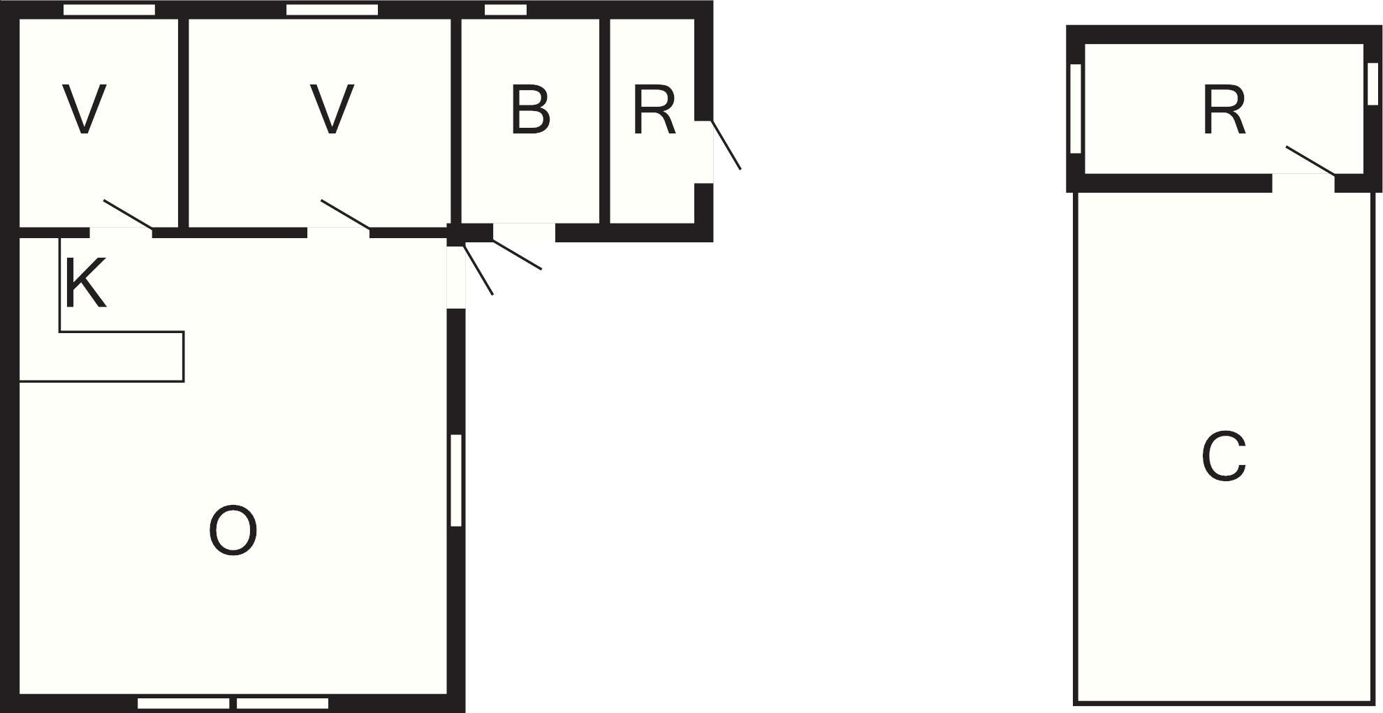 Huset har to soveværelser: et med dobbeltseng og et andet med to køjesenge, hvilket giver i alt fire sovepladser, hvilket gør det perfekt til familier eller små grupper. Interiøret er praktisk og komfortabelt, så alle kan nyde et behageligt og stressfrit ophold.