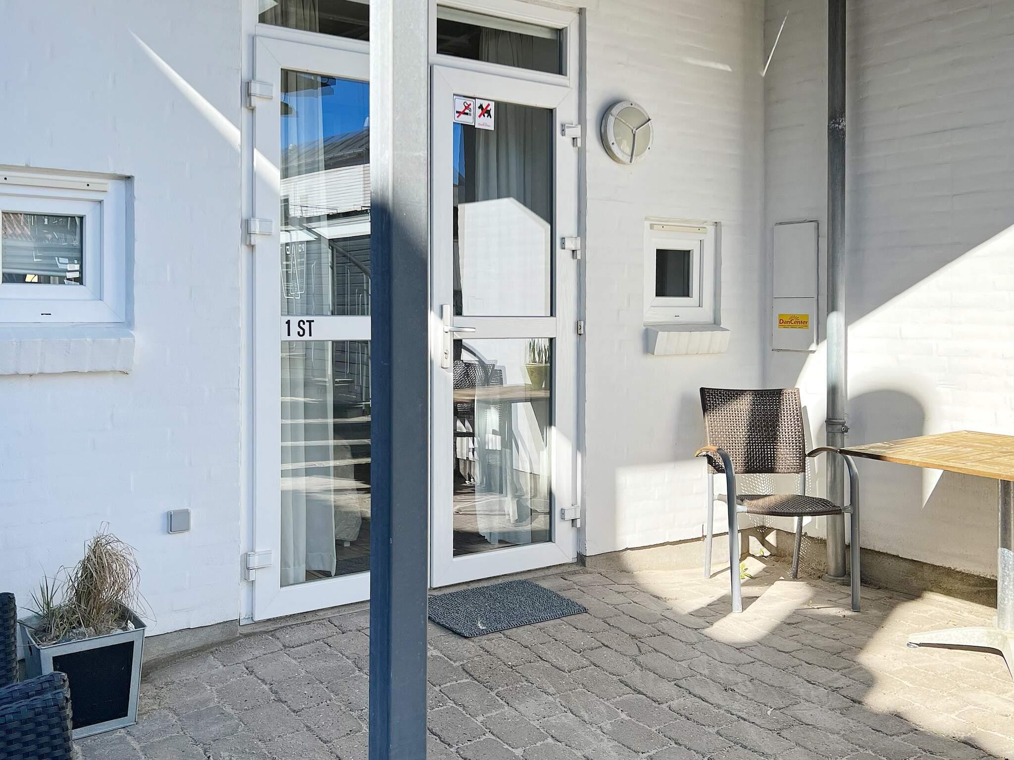 Fra enden af ??stuen er der udgang til en lille hyggelig terrasse, der er perfekt til aftensammenkomster omkring havegrillen. Her kan du nyde måltider udendørs, mens du lytter til den beroligende lyd fra bølgerne i det fjerne. Parkering er til rådighed i forbindelse med lejligheden, og gæsterne har også gratis adgang til Blokhus vandland, der byder på ekstra sjov for familier. Denne ejendom tilbyder en ideel blanding af afslapning ved havet, byfaciliteter og behageligt ophold for en uforglemmelig ferieoplevelse.