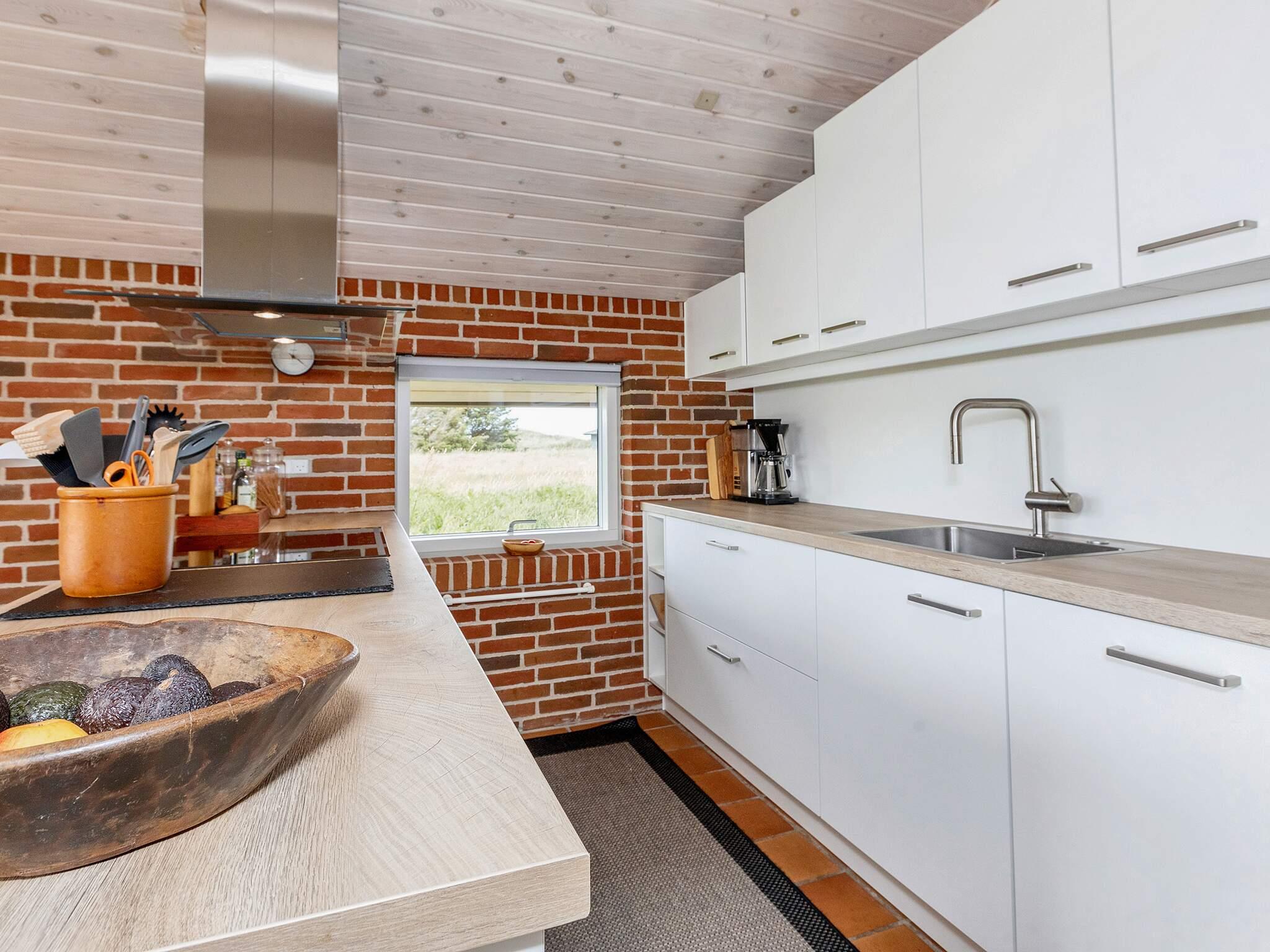 Indretningen er i personlig, dansk sommerhusstil, smagfuldt og i god kvalitet. Den sydvendte solgård, mellem hus og anneks, er det perfekte opholdssted på lune sommerdage – her er læ for vinden og helt ugenerte omgivelser i storslået natur.