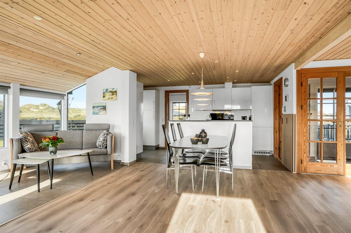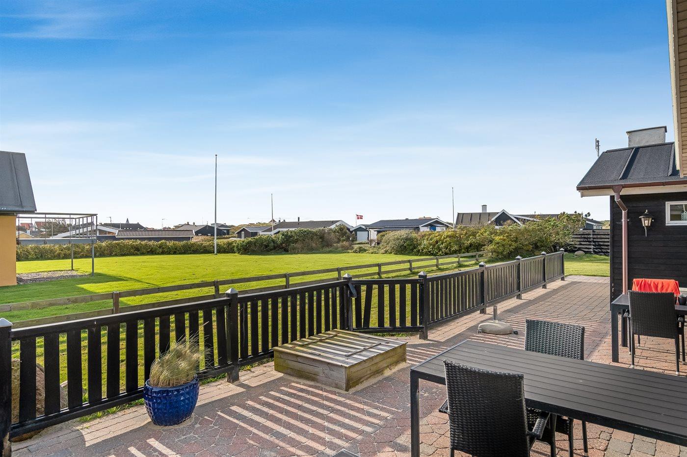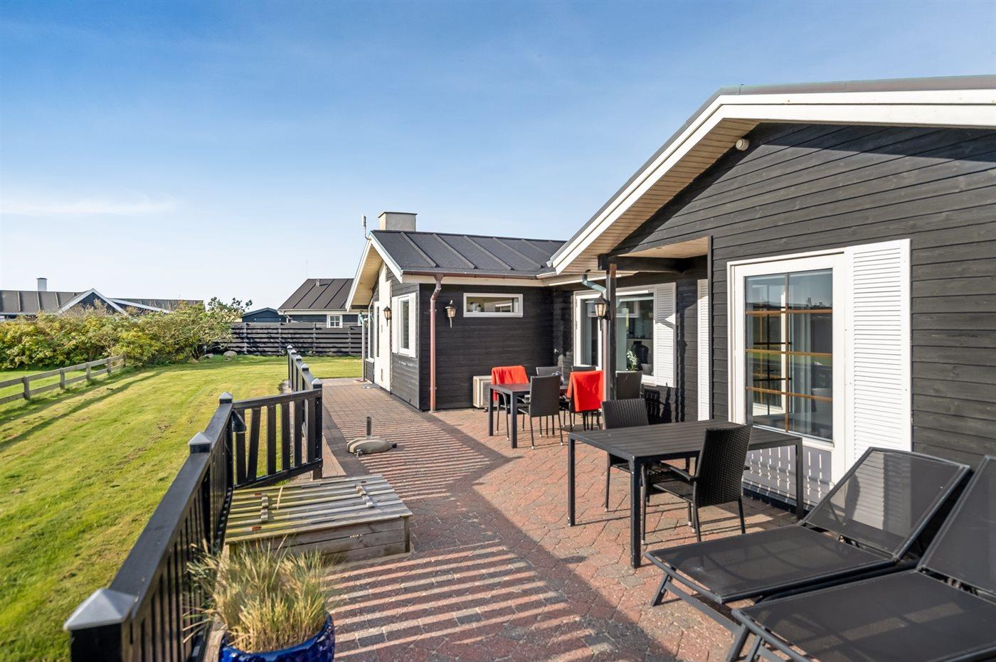 Husets store terrasse vender mod syd og skærmer for vinden der ofte kommer fra vest. Hvis du tager i sommerhus for at gå lange ture langs Vestkysten eller for at bade, så er dette sommerhus det helt rigtige valg.