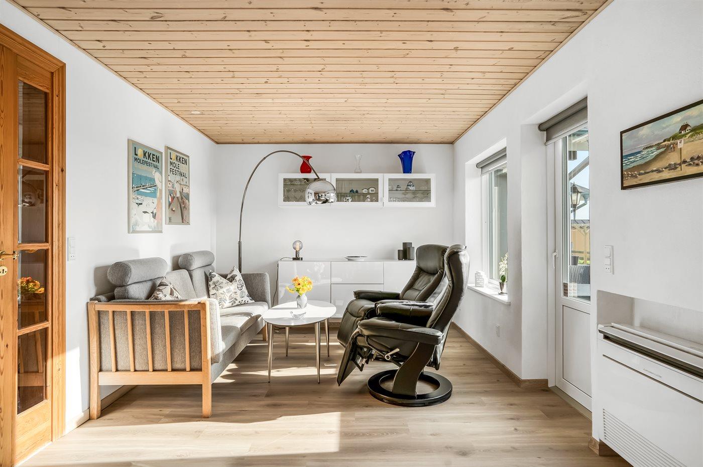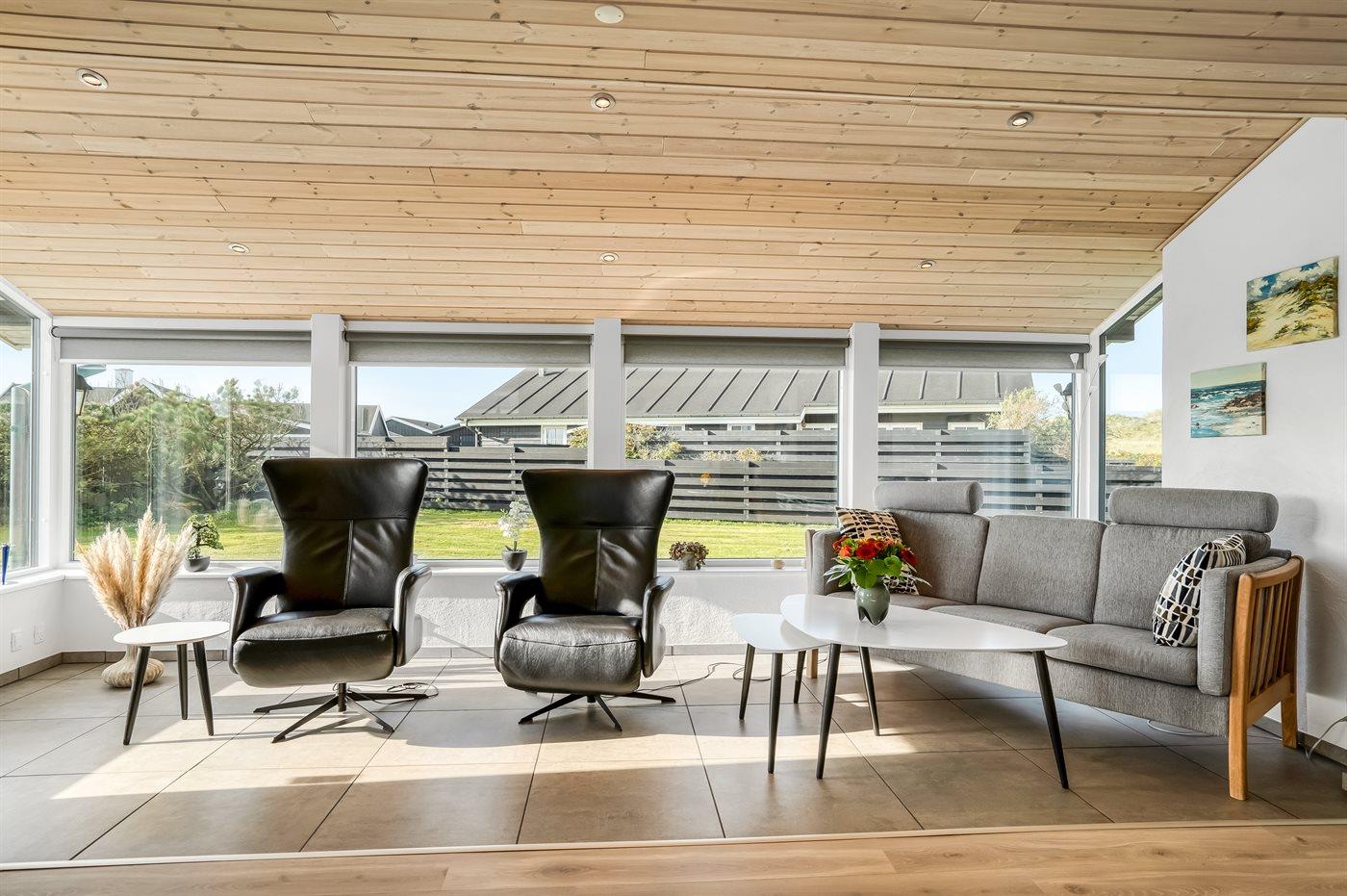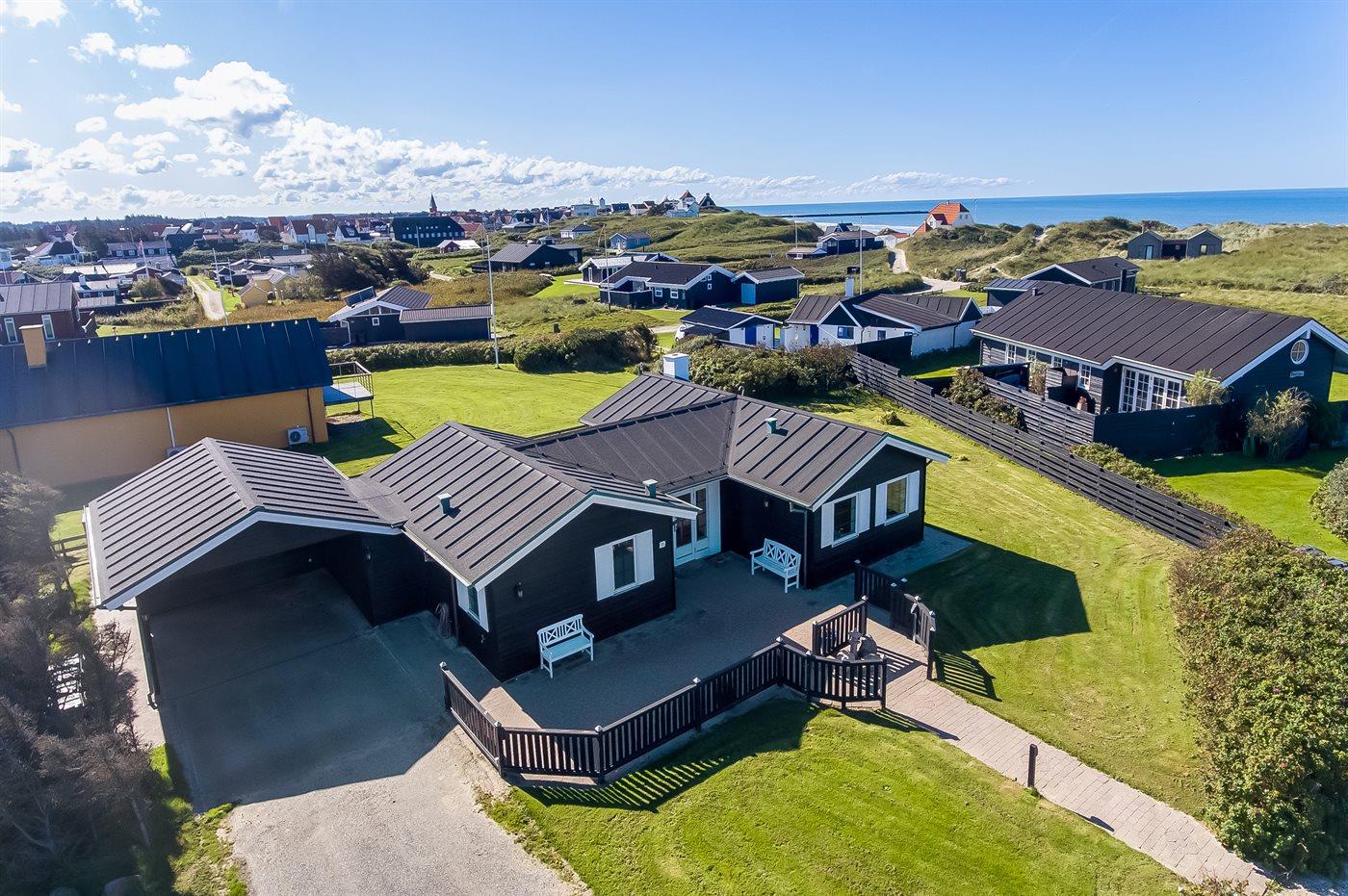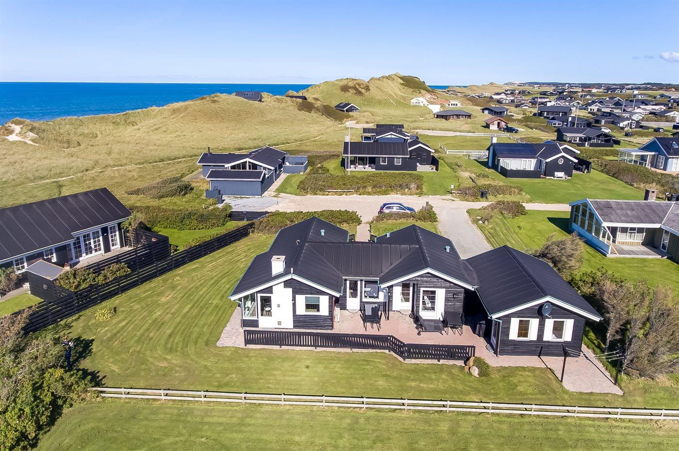Husets store terrasse vender mod syd og skærmer for vinden der ofte kommer fra vest. Hvis du tager i sommerhus for at gå lange ture langs Vestkysten eller for at bade, så er dette sommerhus det helt rigtige valg.