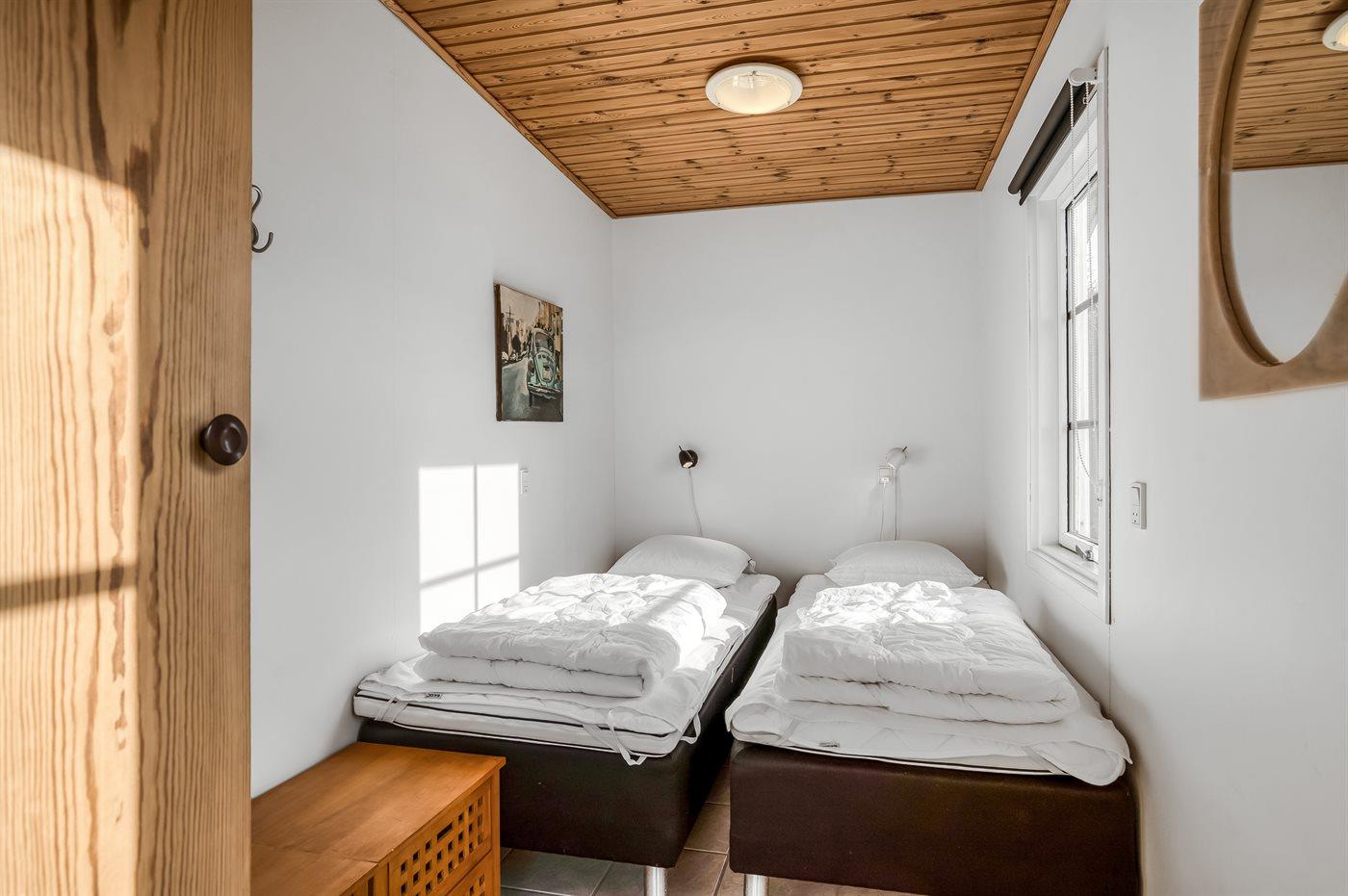 Der er i alt 3 soveværelser. Sovepladserne fordeler sig på: 4 sovepladser i dobbeltsenge. 2 sovepladser i enkeltsenge. 2 af disse sovepladser befinder sig i et anneks. Der er gulvvarme i et af soveværelserne.