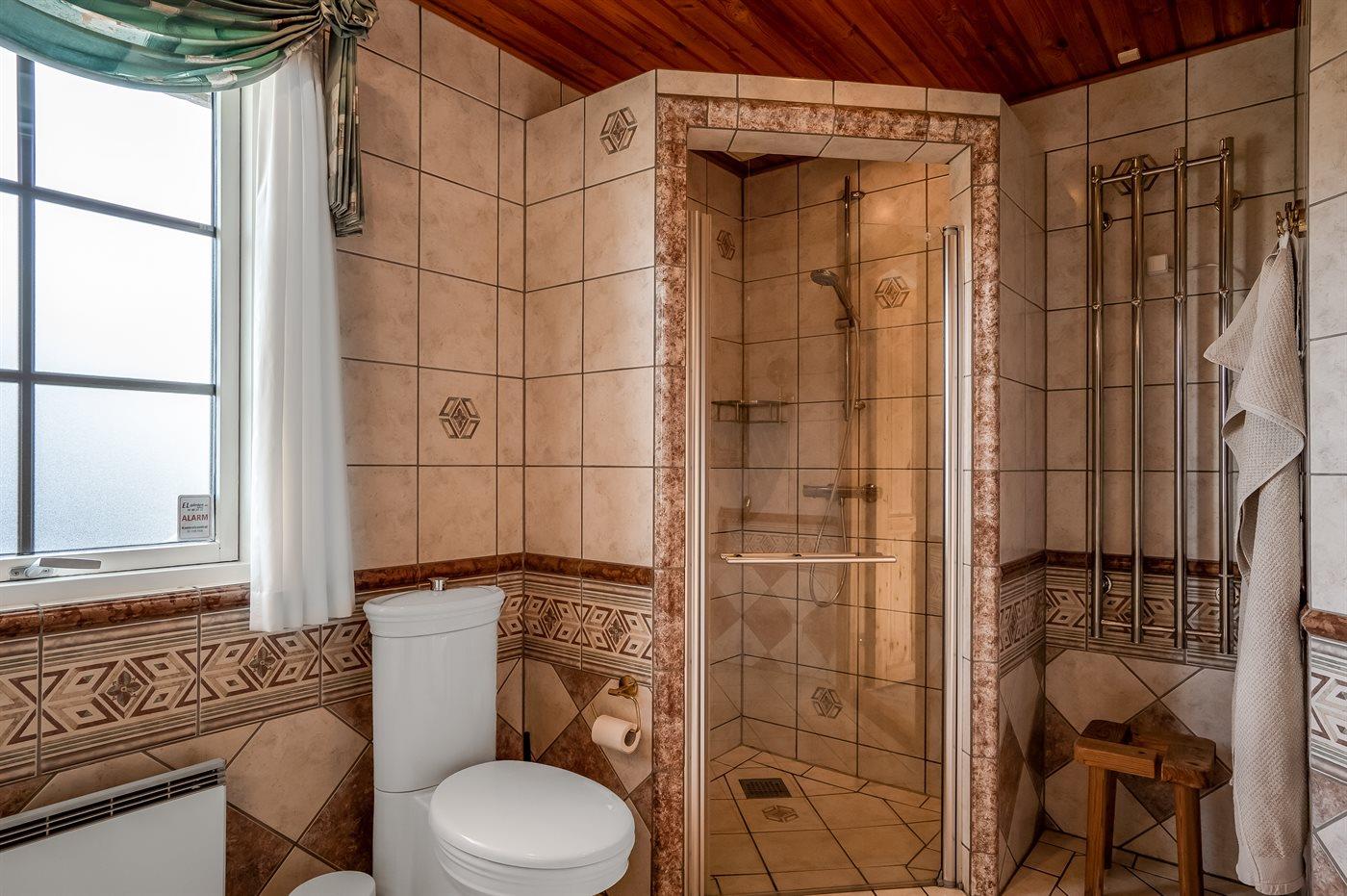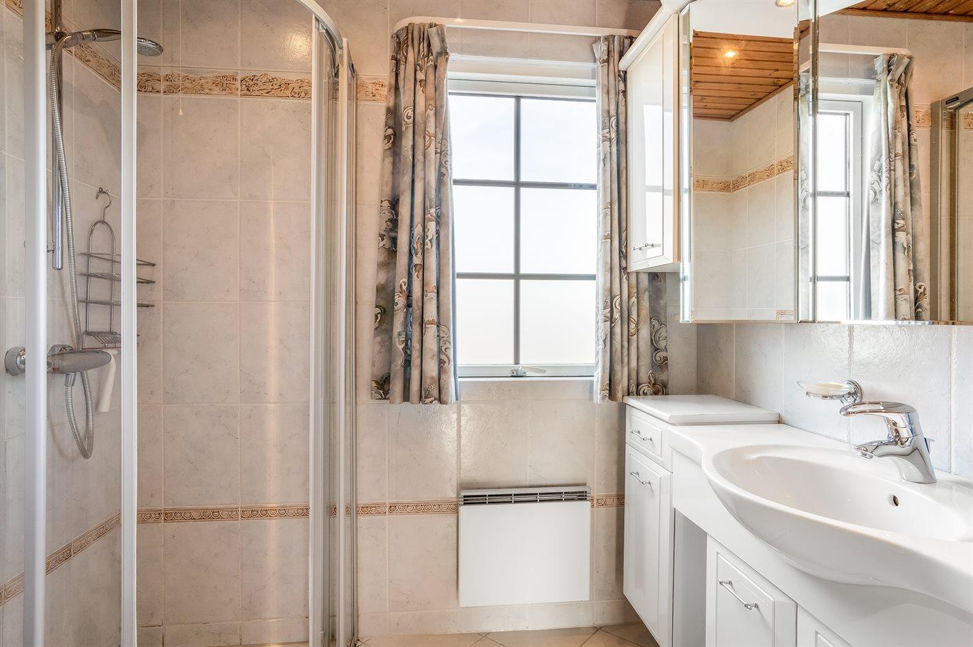 Der er 2 badeværelser med bruseniche og 2 toiletter. Der er gulvvarme på 2 badeværelser.