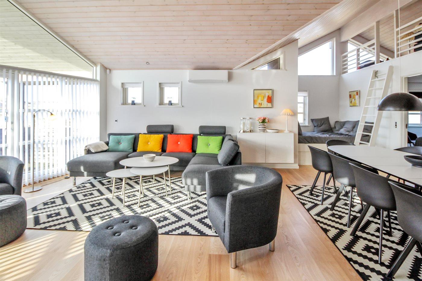 Sommerhuset egner sig til 6 personer. Ferieboligen er på 155 m² og er bygget i 2009. I 2018 gennemgik ferieboligen en delvis renovering. Det er ikke tilladt at medbringe husdyr. Ferieboligen er udstyret med energibesparende varmepumpe. Der er etableret jordvarme, hvilket gør at der i hele huset er en behagelig varme året rundt - uanset vejr og vind. Hele ferieboligen har gulvvarme. Ferieboligen har vaskemaskine. Tørretumbler. Frysekapacitet på 250 liter. Der er desuden brændeovn. Til de små er der 2 stk. barnestole.