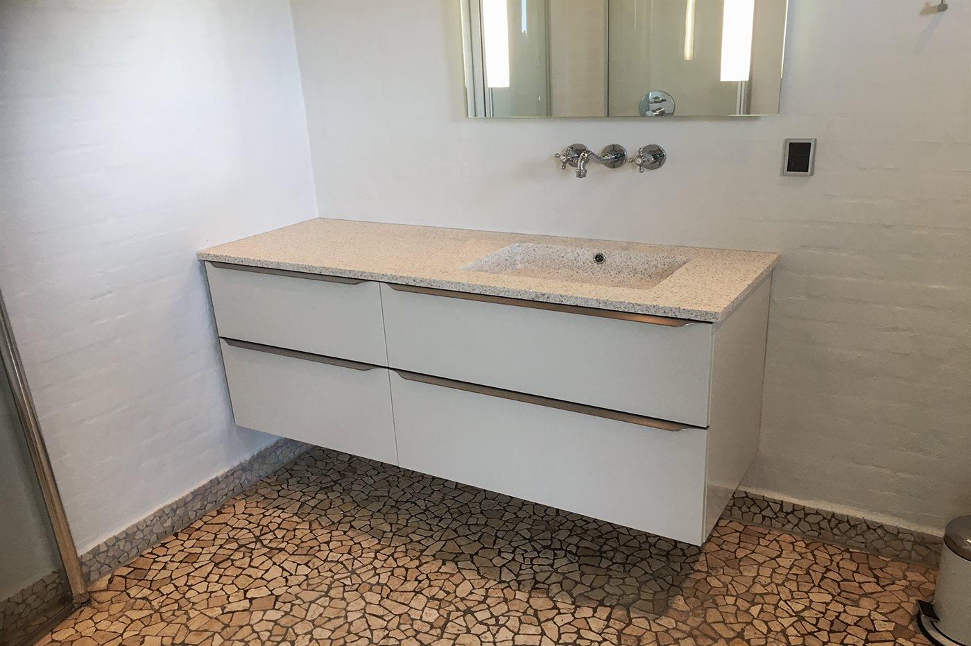 Der er 2 badeværelser med bruseniche og 2 toiletter. Der er gulvvarme på 2 badeværelser.