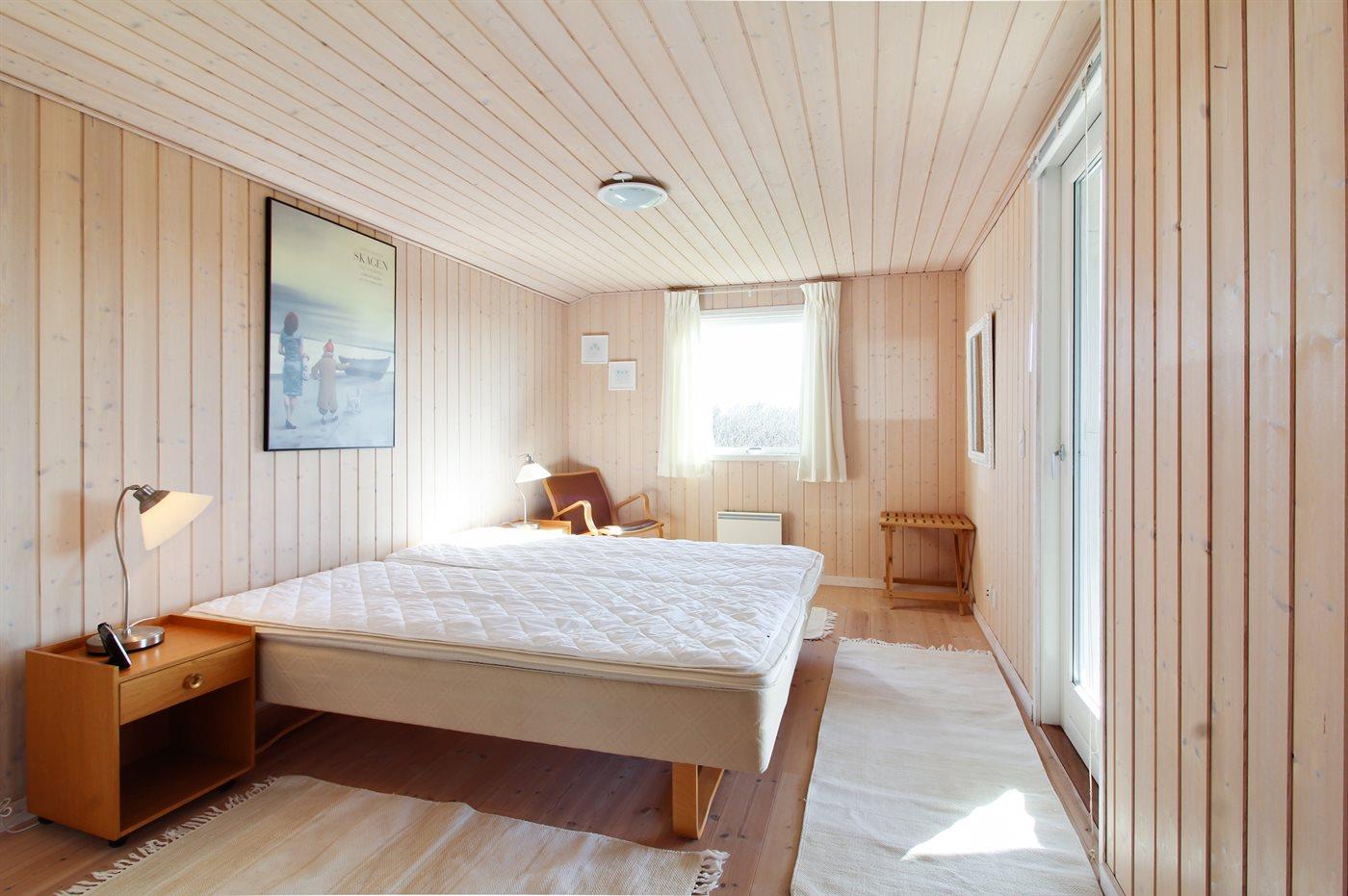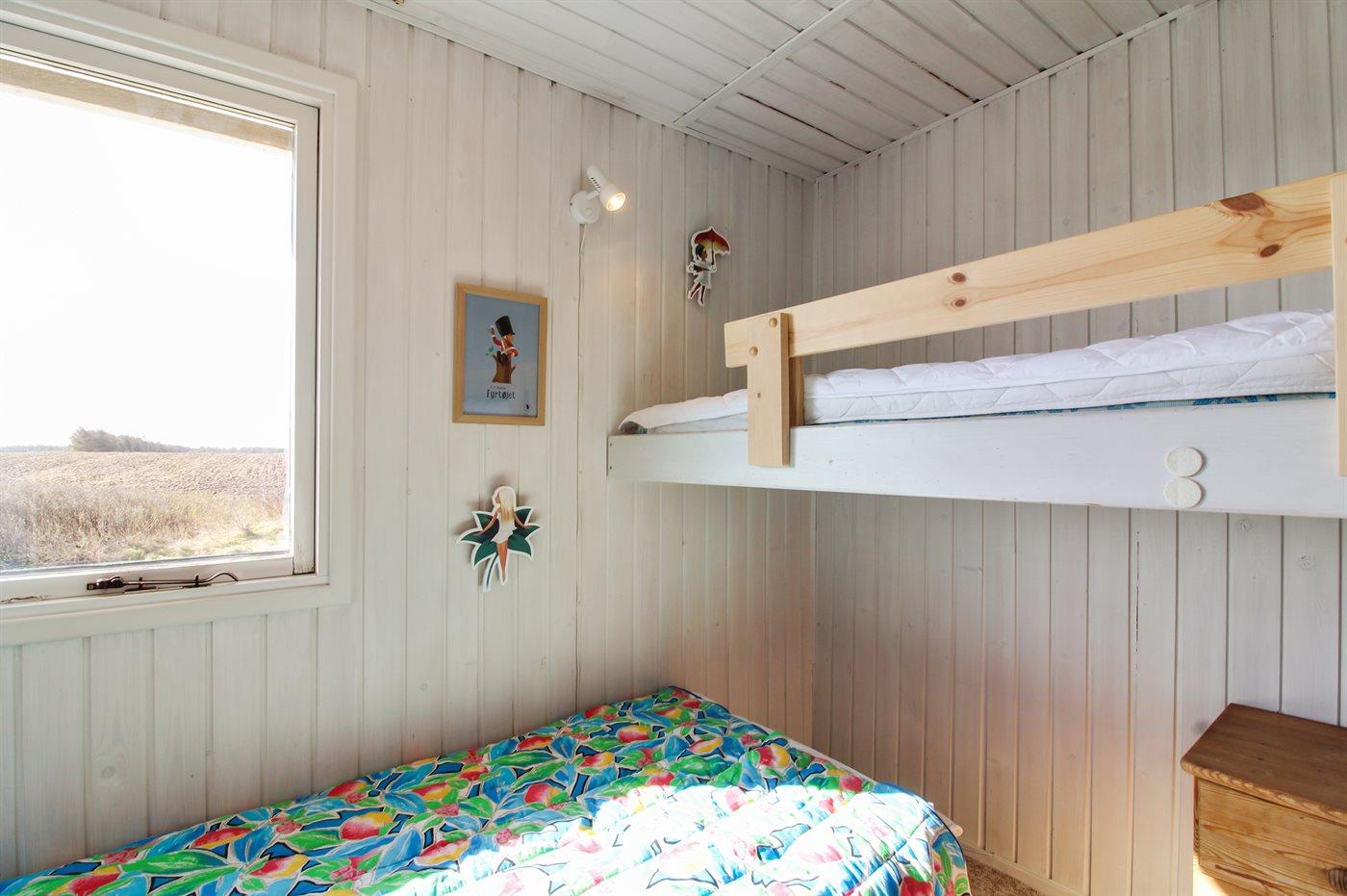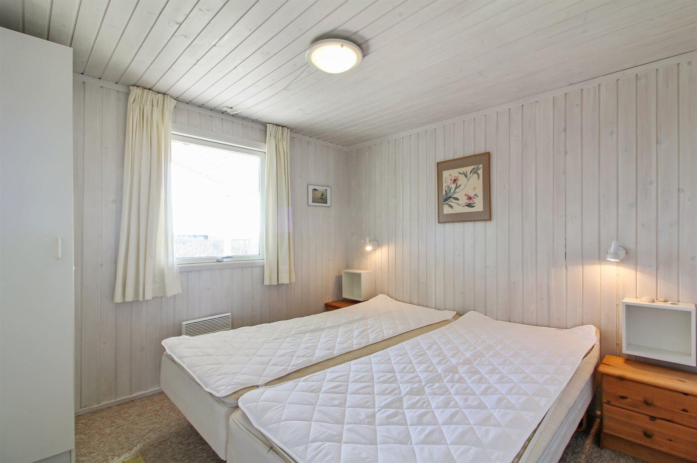 Der er i alt 3 soveværelser. Sovepladserne fordeler sig på: 4 sovepladser i dobbeltsenge. 1 soveplads i enkeltseng. 1 soveplads i køjeseng. Derudover er der 1 stk. barneseng.