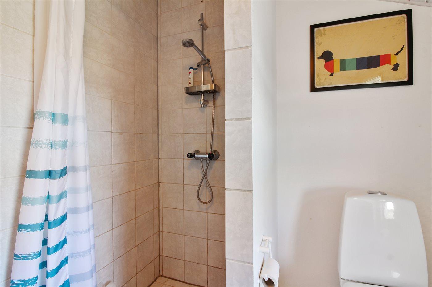 Der er 1 badeværelse med bruseniche og 1 toilet. Der er gulvvarme på 1 badeværelse.