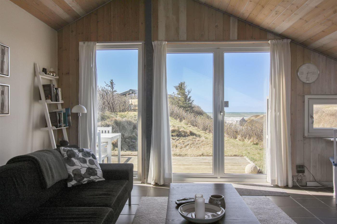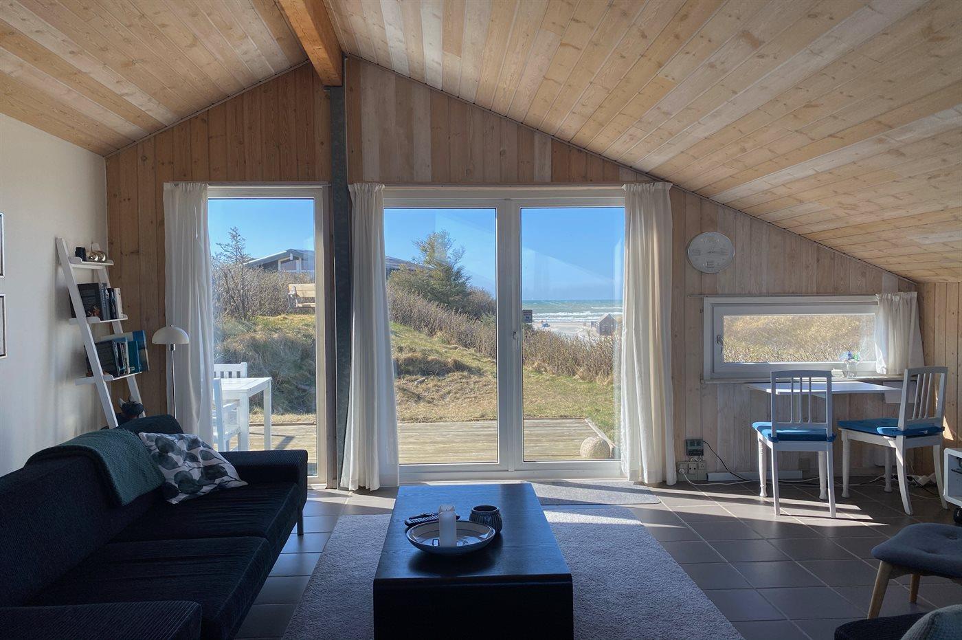 Dejligt sommerhus, bygget i flere forskellige niveauer, beliggende på en mindre klitgrund, kun 50 fra vandet. Flot havudsigt fra stuen og terrassen. Huset har dejlig åben terrasse, der ligger i læ af klitterne. Huset er indrettet i ejernes personlige stil og oser af hygge.