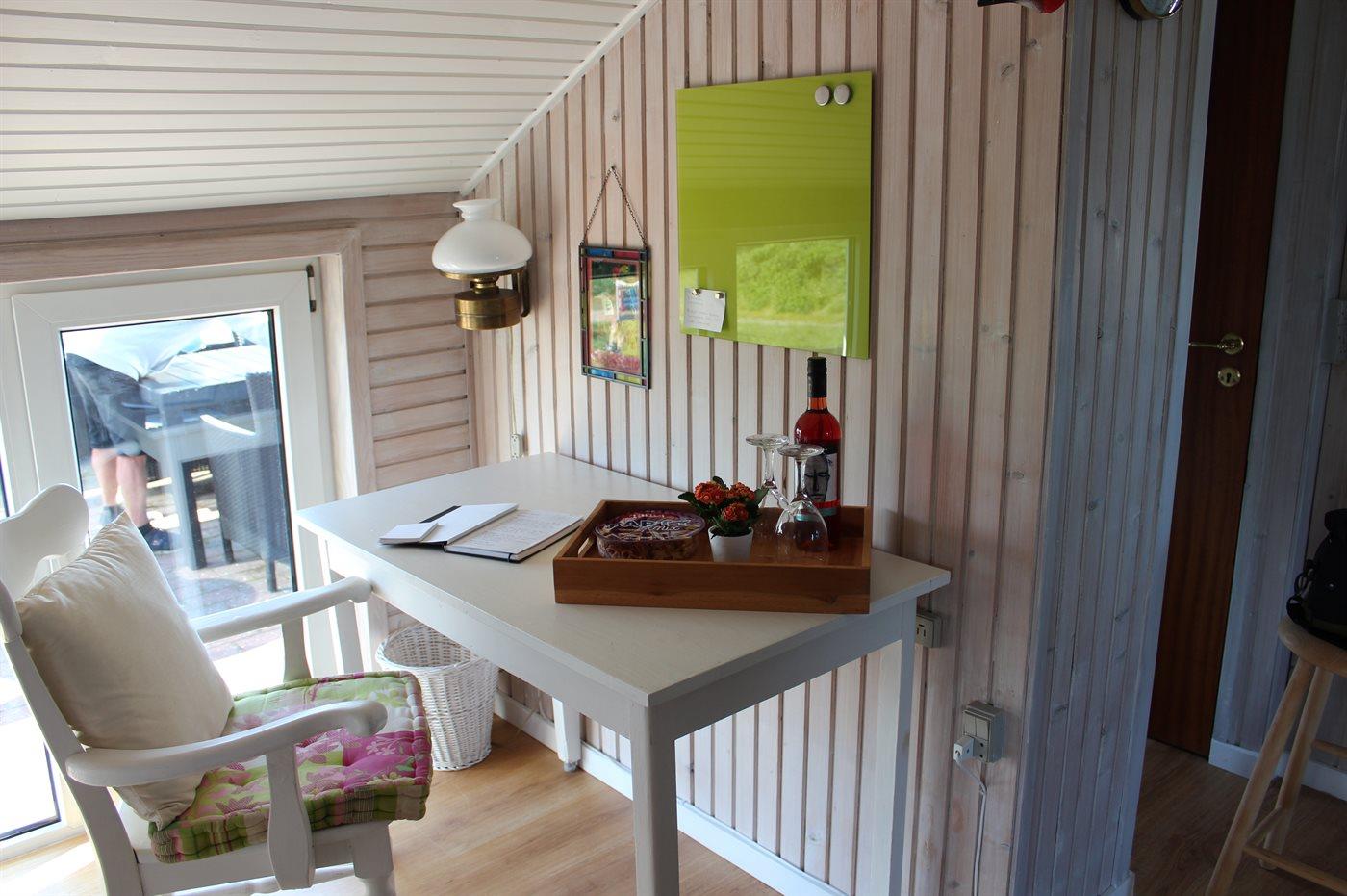 Køkkenet er udstyret med 1 køleskab. Der er 4 keramiske kogeplader, varmluftovn, mikrobølgeovn samt opvaskemaskine.