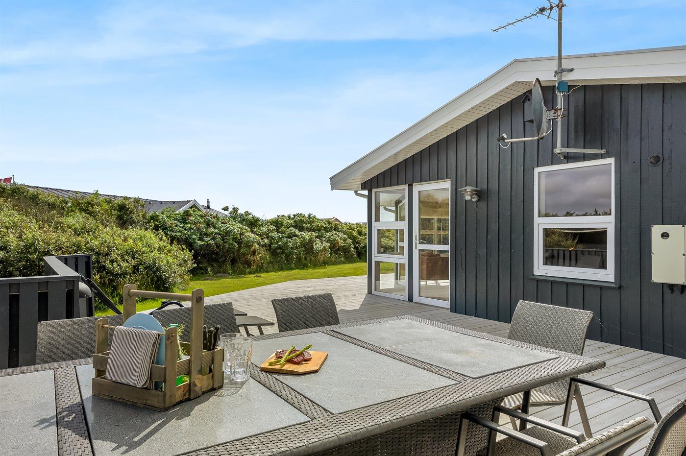 Dejligt moderniseret sommerhus i træ beliggende 200 m fra stranden og den populære badeby Løkken. Huset er omgivet af store åbne terrassearealer, der er udstyret med havemøbler og solsenge.