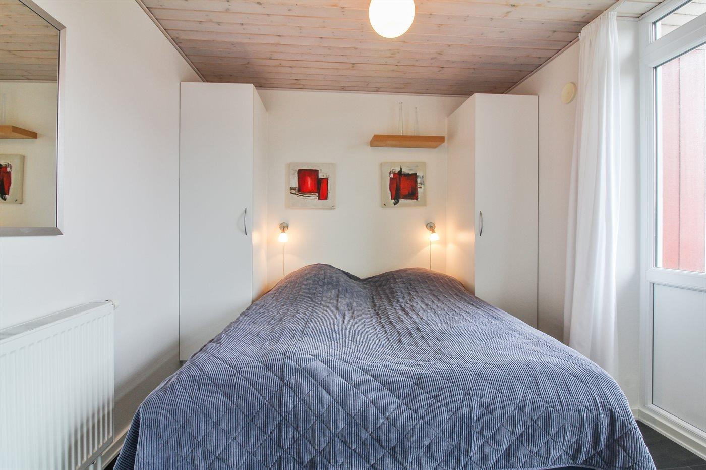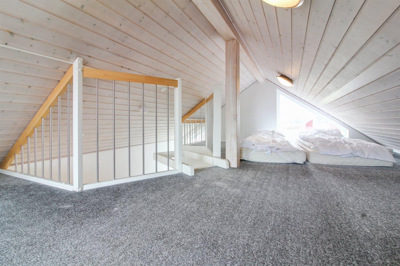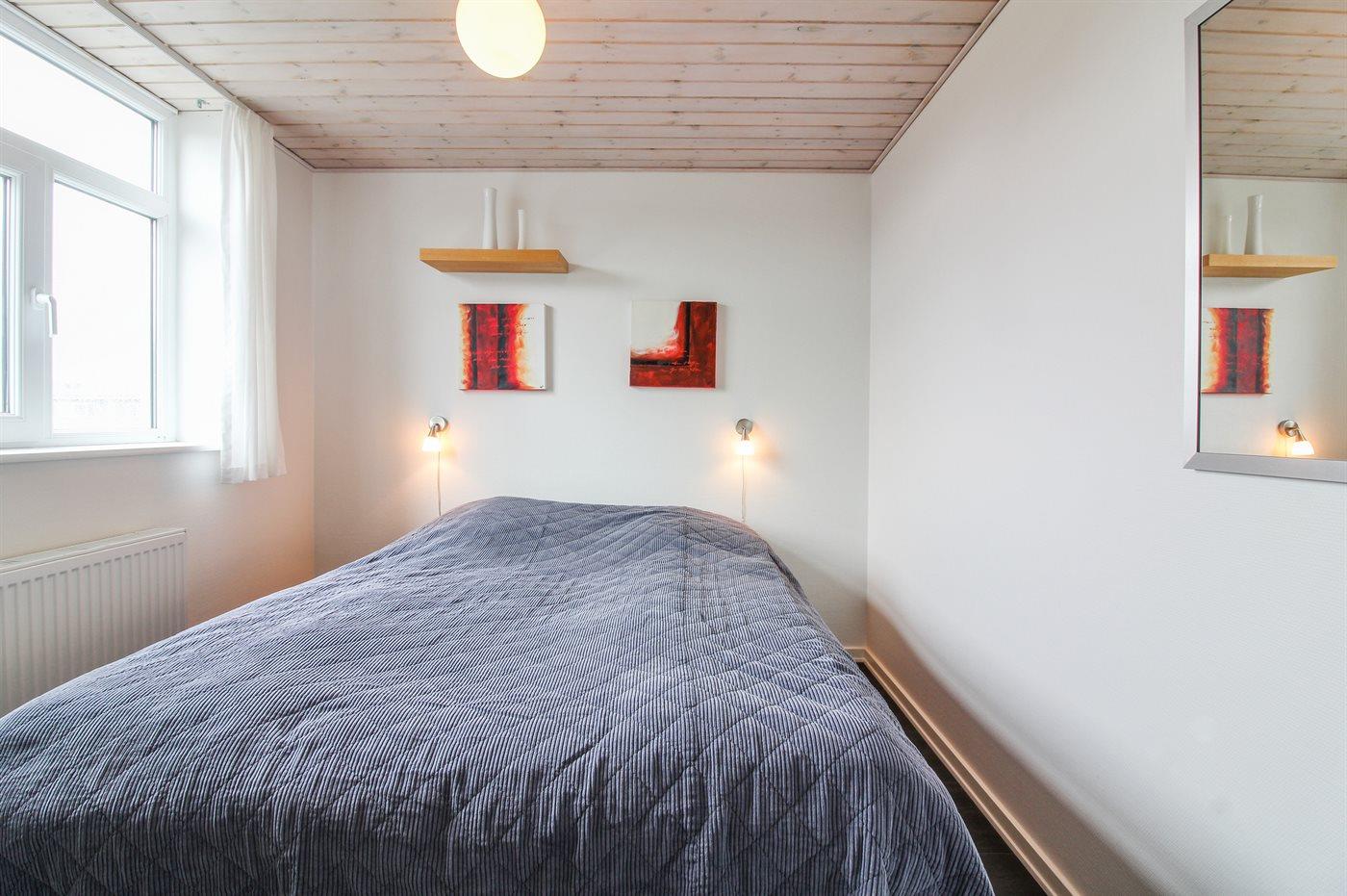 Der er i alt 2 soveværelser. Sovepladserne fordeler sig på: 4 sovepladser i dobbeltsenge. 2 sovepladser på madrasser. 2 af disse sovepladser befinder sig på husets hems. Derudover er der 1 stk. barneseng.