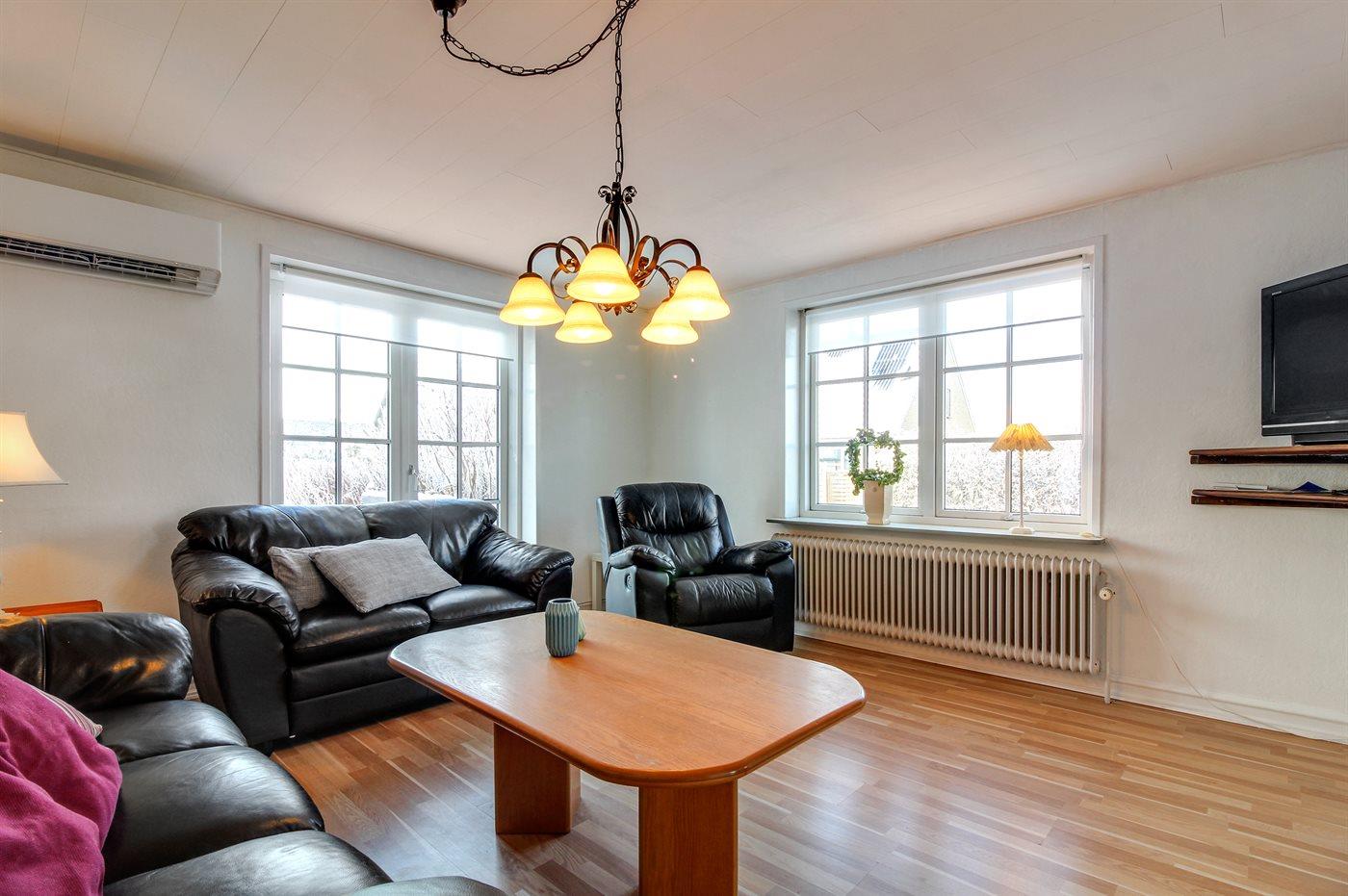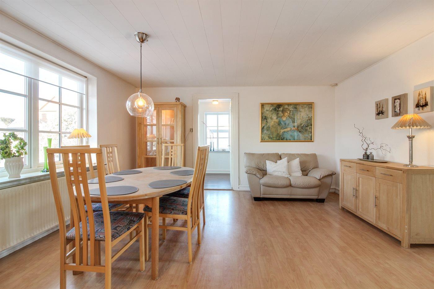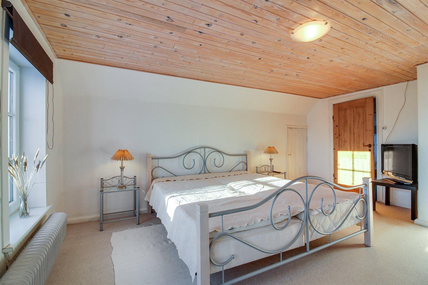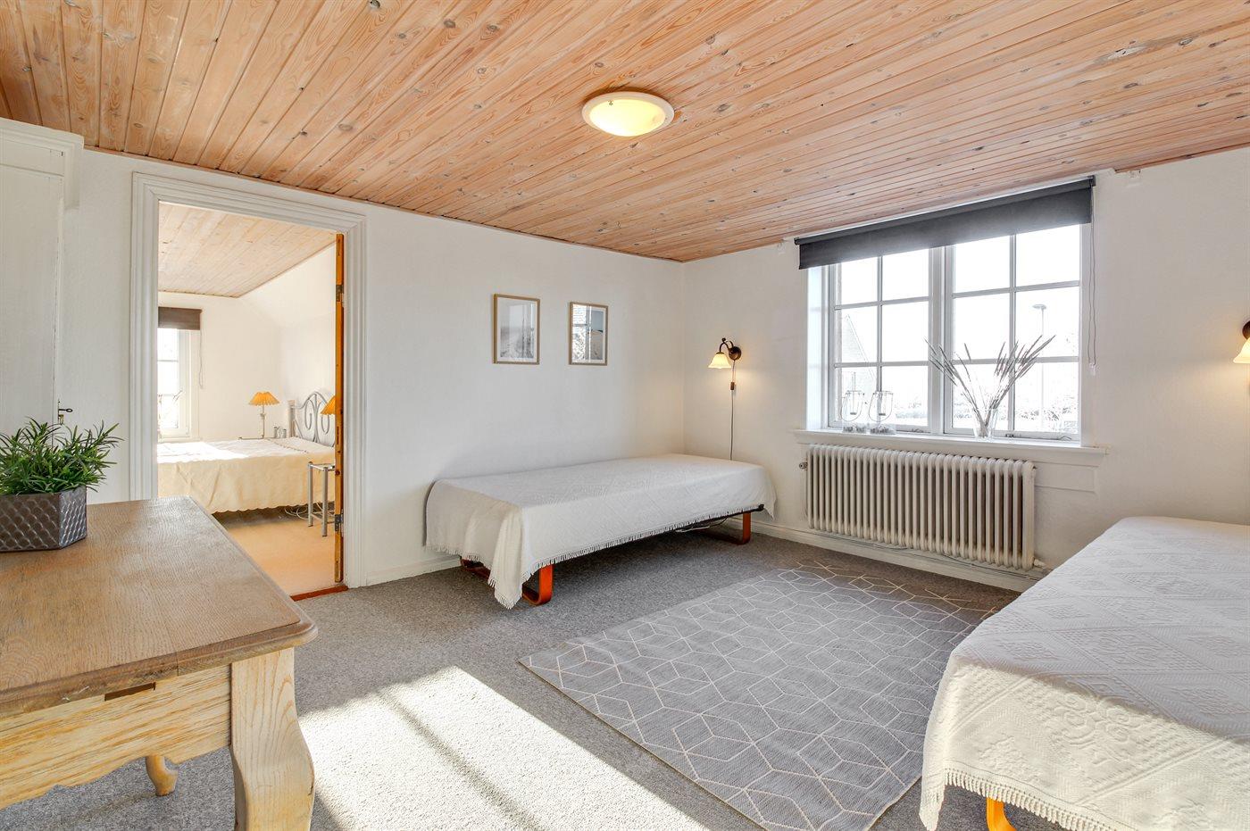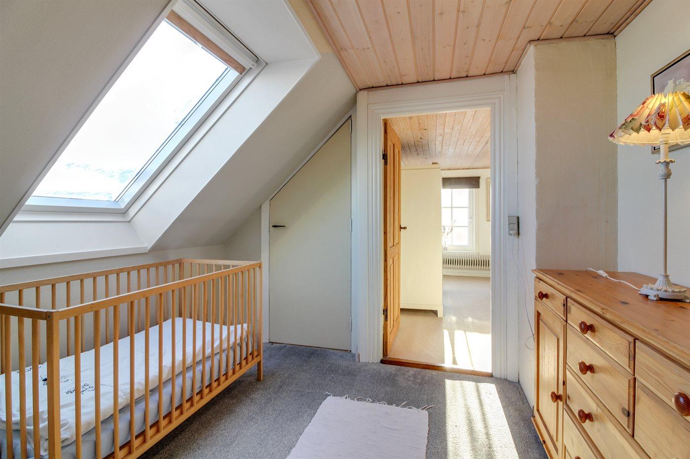 Der er i alt 3 soveværelser. Sovepladserne fordeler sig på: 4 sovepladser i dobbeltsenge. 2 sovepladser i enkeltsenge. Derudover er der 1 stk. barneseng.