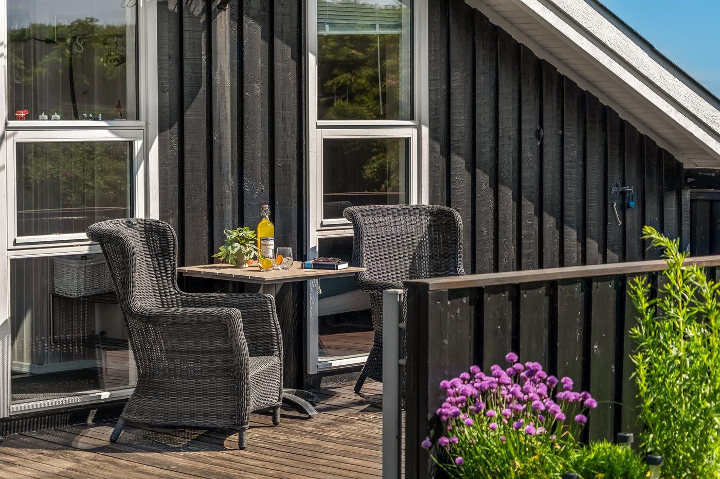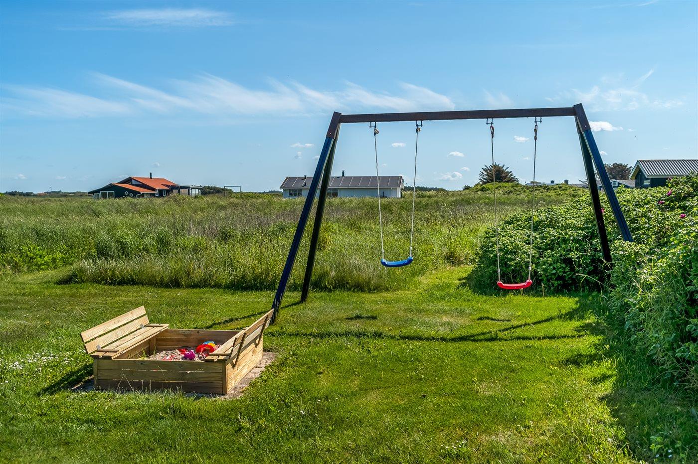 Ferieboligen er beliggende på en 2500 m² stor naturgrund. Der er 300 m til havet. Nærmeste forretning er beliggende i en afstand af 1000 m. Til ferieboligen hører 50 m² terrasseareal. Gynge. Sandkasse. Parkering ved ferieboligen.