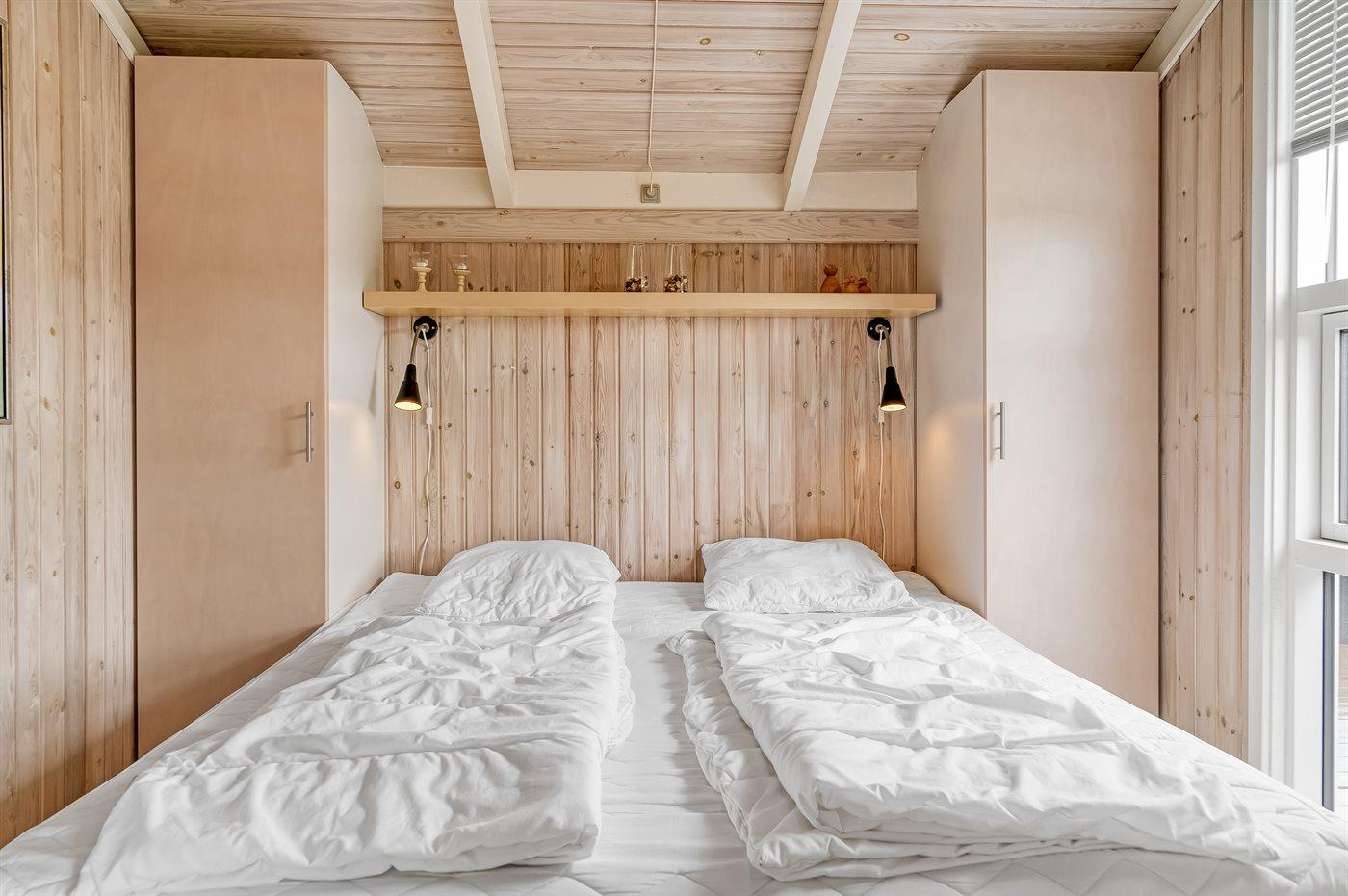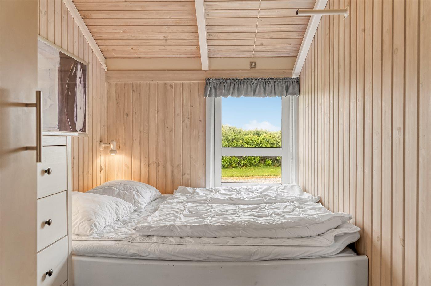 Der er i alt 3 soveværelser. Sovepladserne fordeler sig på: 4 sovepladser i dobbeltsenge. 1 soveplads i enkeltseng. 2 sovepladser i køjeseng. 2 sovepladser på madrasser. 2 sovepladser i alkove. 2 af disse sovepladser befinder sig på husets hems. Derudover er der 1 stk. barneseng.