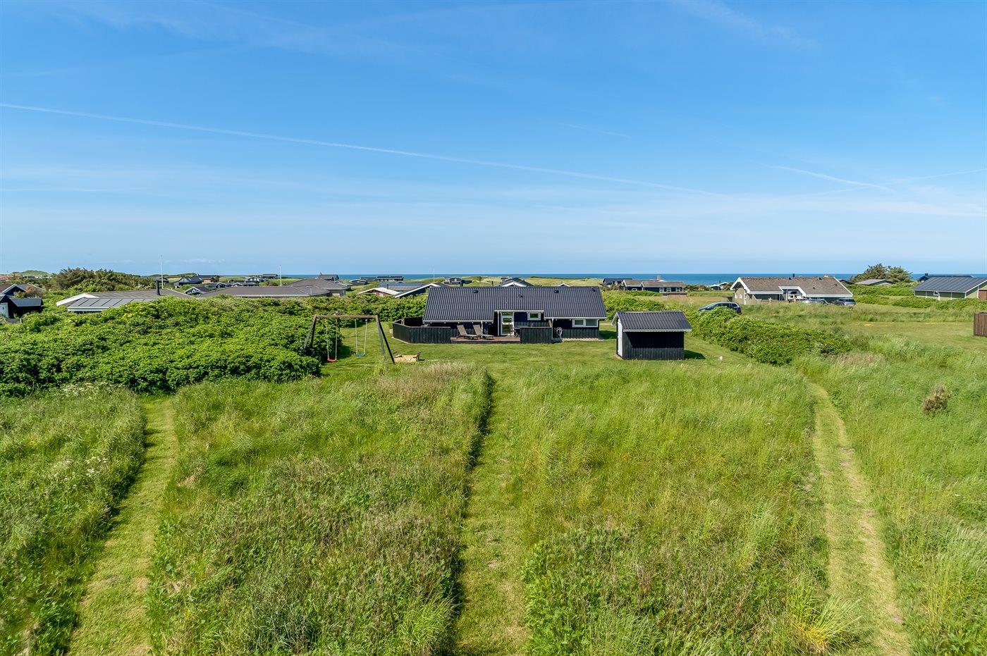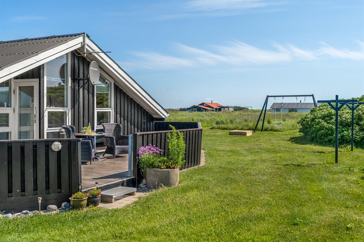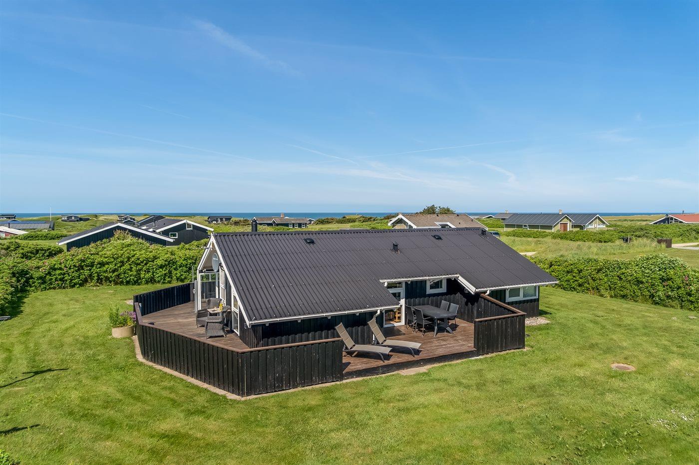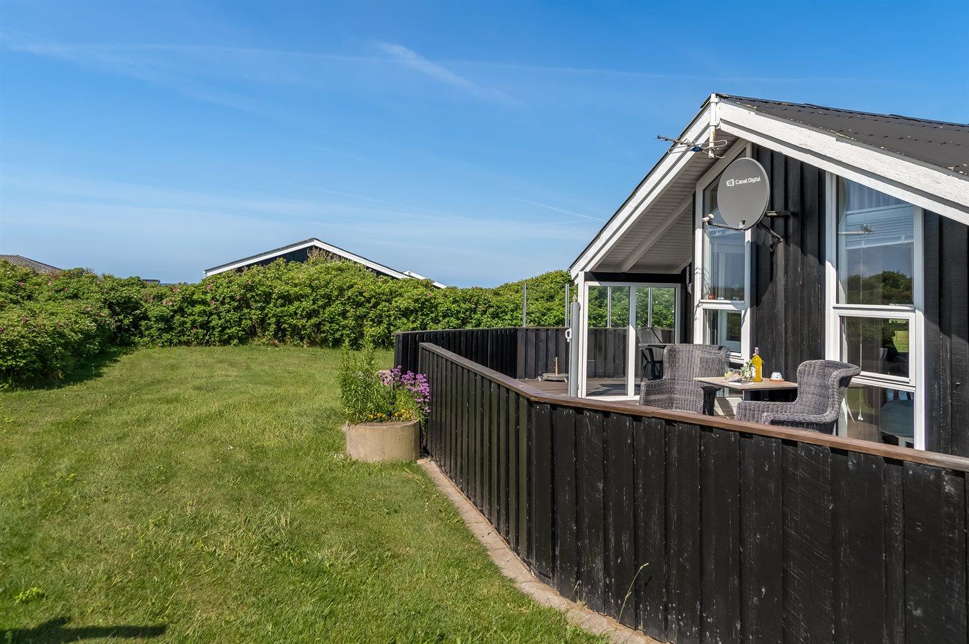 Hyggeligt og velindrettet sommerhus med havkik beliggende på en delvist indhegnet grund - tæt ved Vesterhavet.