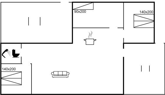 Der er i alt 3 soveværelser. Sovepladserne fordeler sig på: 4 sovepladser i dobbeltsenge. 1 soveplads i enkeltseng.