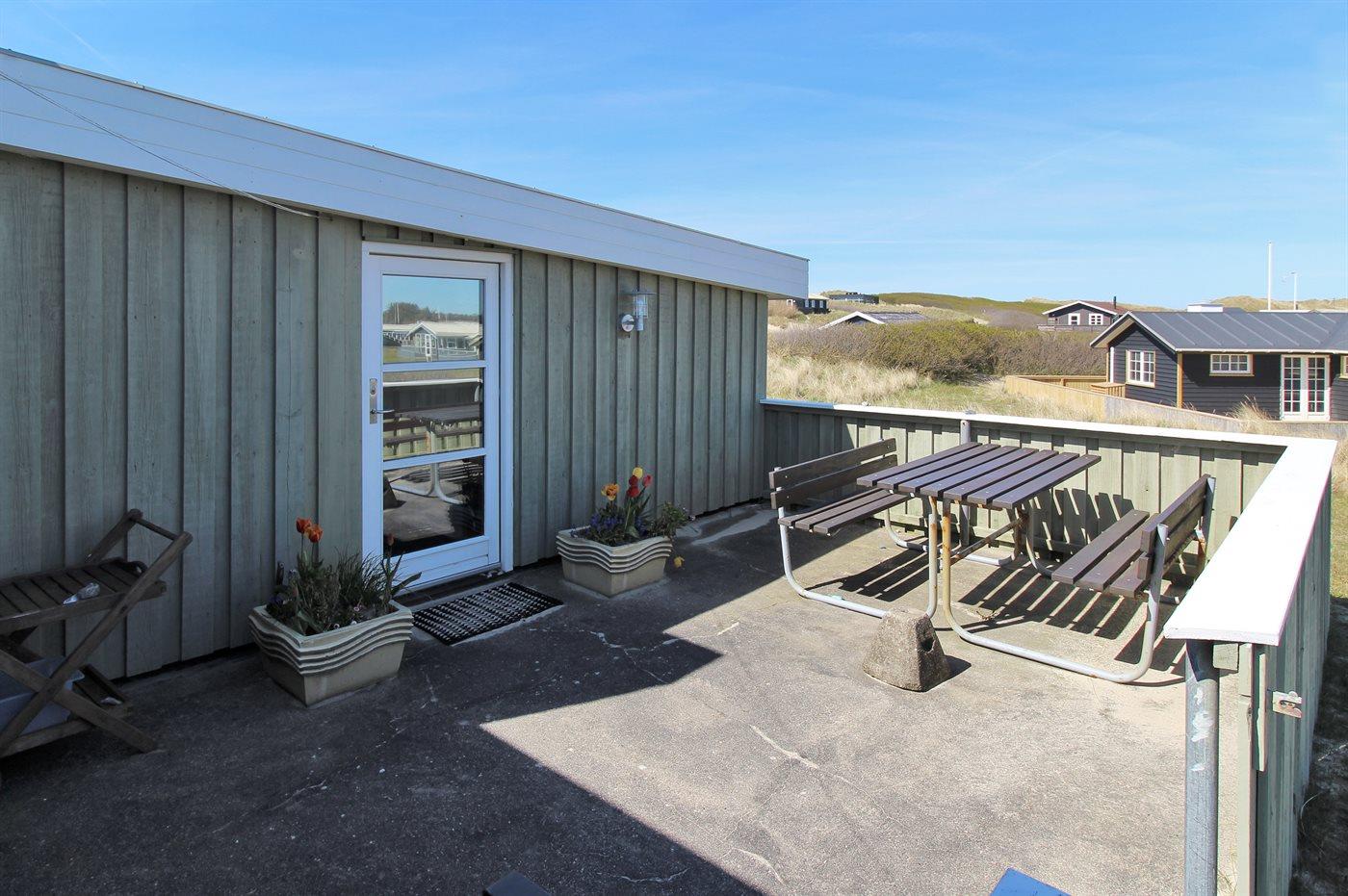 Ferieboligen er beliggende på en 898 m² stor naturgrund. Der er 220 m til havet. Nærmeste forretning er beliggende i en afstand af 500 m. Heraf i alt 50 m² lukket terrasse. Der er redskabsrum. Parkering ved ferieboligen.