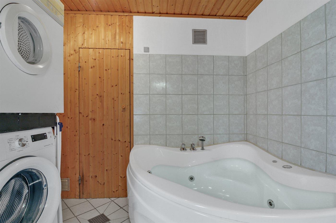 Der er 1 badeværelse med bruseniche og 1 toilet.. Der er gulvvarme på 1 badeværelse. I saunaen er der mulighed for afslapning.
