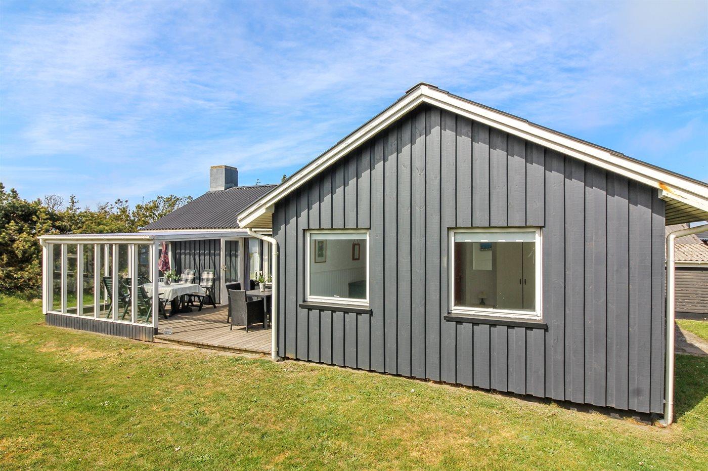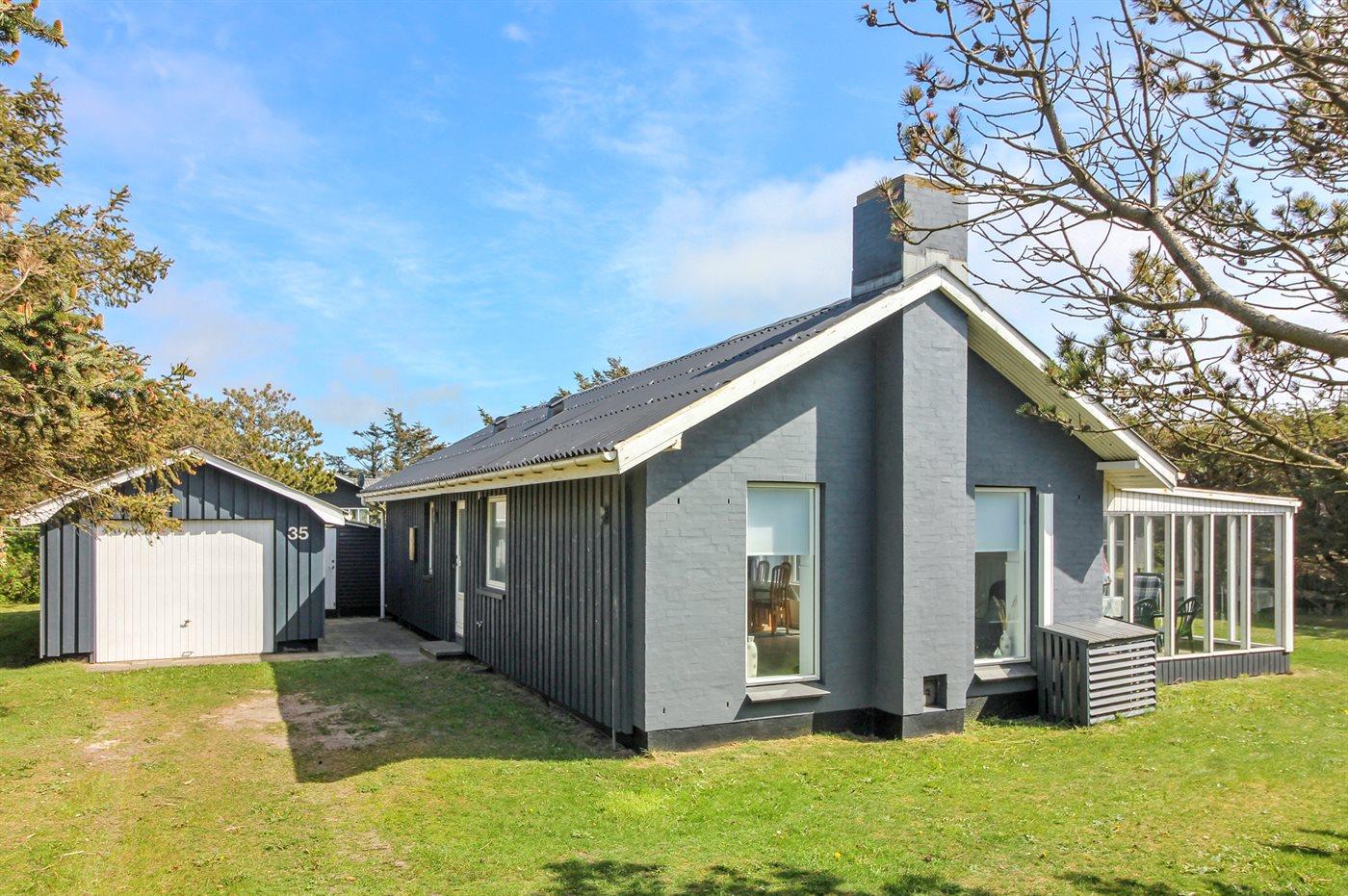 Hyggeligt sommerhus beliggende på dejlig, delvis lukket grund i roligt feriehusområde tæt den skønne, brede sandstrand og i gåafstand til Løkken centrum.