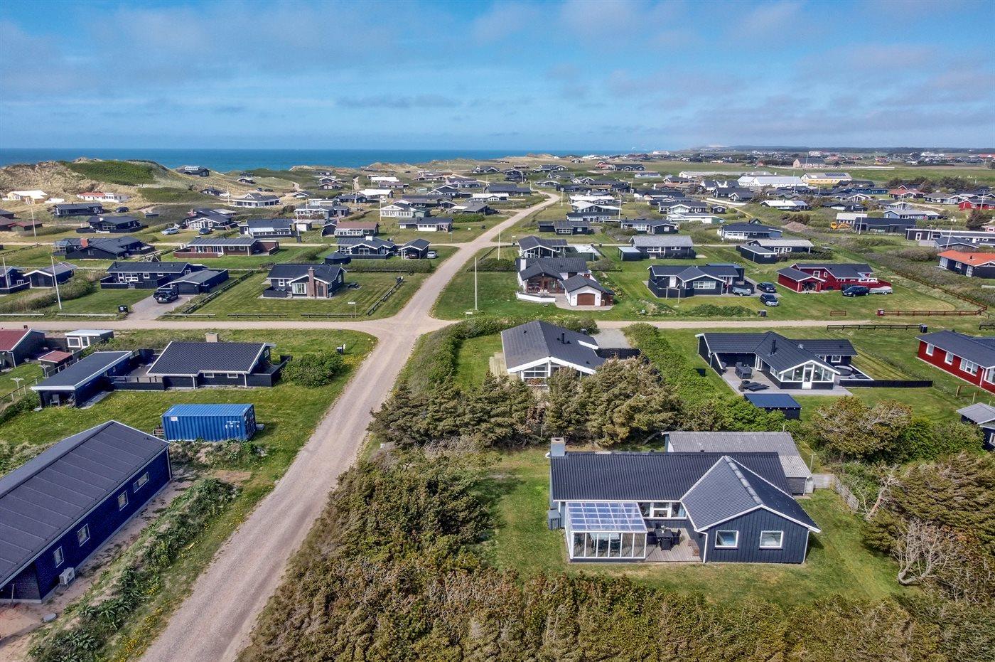 Ferieboligen er beliggende på en 850 m² stor naturgrund. Der er 300 m til havet. Nærmeste forretning er beliggende i en afstand af 650 m. Til ferieboligen hører 7 m² terrasseareal. Desuden er der 9 m² overdækket terrasse. Der er redskabsrum. Der er garage til rådighed. Parkering ved ferieboligen.