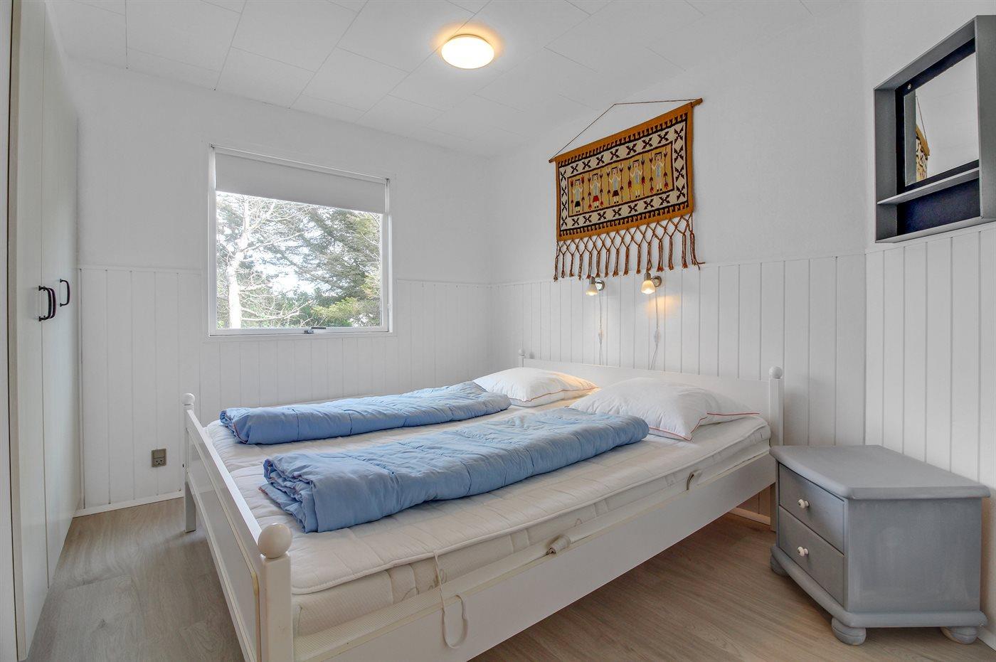 Der er i alt 3 soveværelser. Sovepladserne fordeler sig på: 4 sovepladser i dobbeltsenge. 2 sovepladser i enkeltsenge.